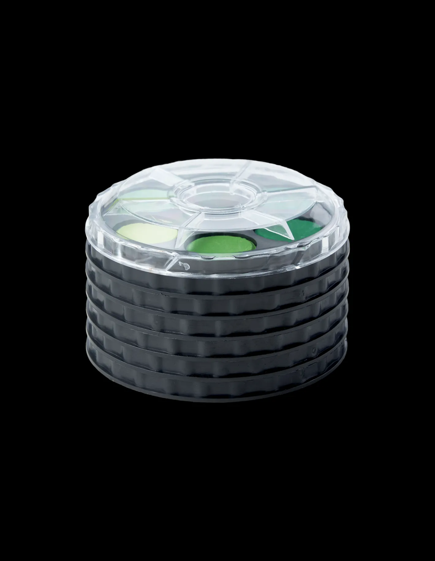 Søstrenes akvareller kommer i en pakke med 6 paletter, som hver indeholder 6 forskellige farver, dvs. 36 farver i alt. De stabelbare paletter gør det nemt at tage akvarellerne med på en kreativ rejse.