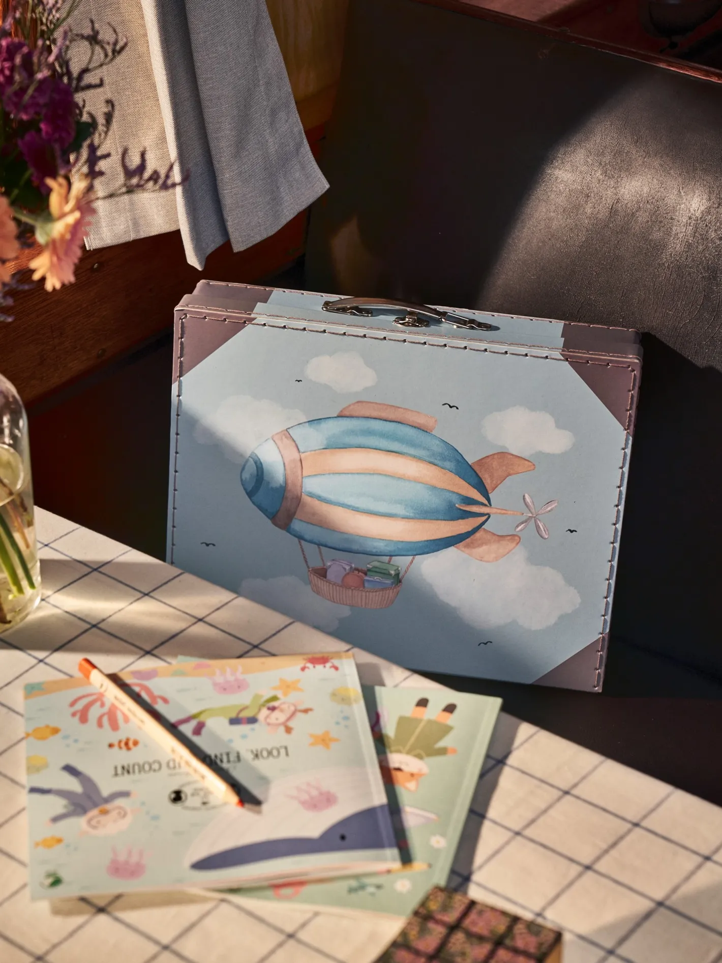 Søstrenes kuffert til børn er lavet af FSC®-certificeret papir med metallås og håndtag. På indersiden har kufferten også et lille navneskilt.