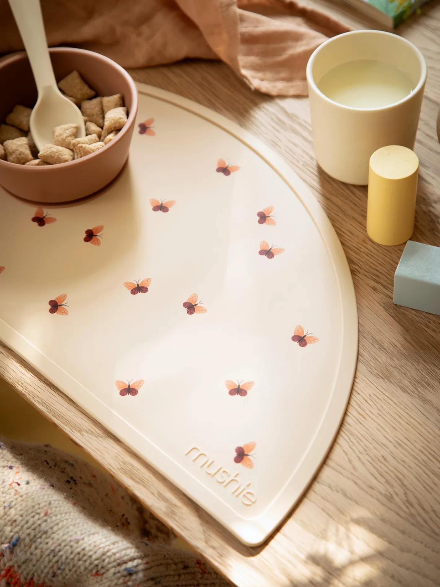 Dækkeservietten fra Mushie er lavet af fødevaregodkendt silikone.Den hjælper med at holde Deres barn og bordet rent. Den ville også passe godt sammen med silikonehagesmækken.Søstrene anbefaler at rengøre den med varmt sæbevand før brug. Bemærk venligst, at produktet altid skal bruges under opsyn af en voksen. Undersøg produktet før hver brug. Afskaf ved tegn på skade eller svaghed.