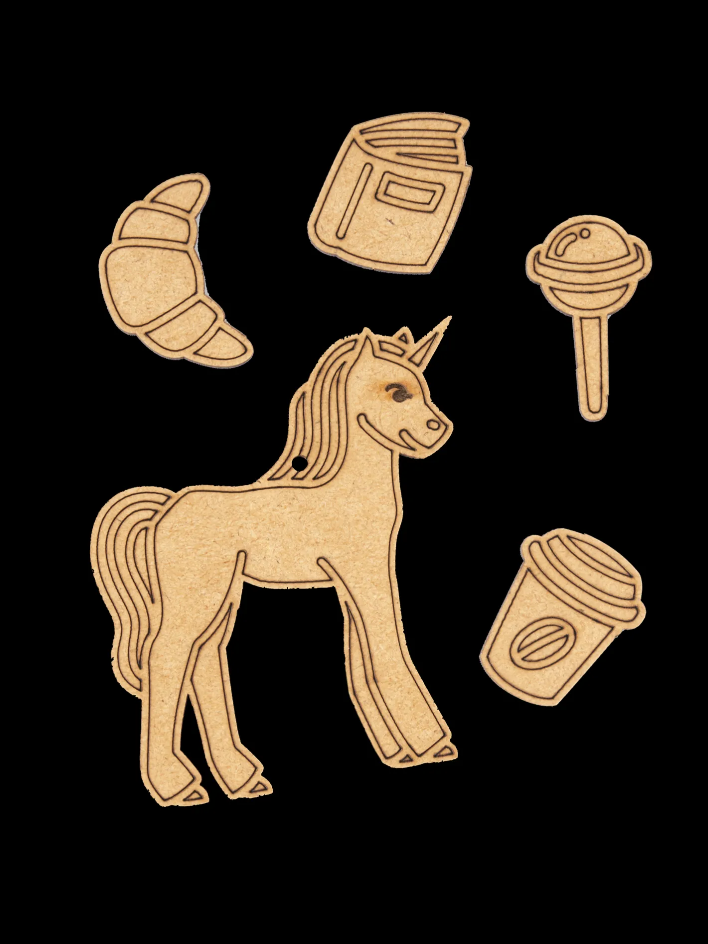 Et finurligt lille DIY-kit fra danske Crateit, produceret på Fyn. Kittet indeholder 5 træfigurer lavet af HDF samt 5 klistermærker. Figurerne er ikke malede, så de kære små kan dekorere dem, som de vil, enten med maling eller tusch.