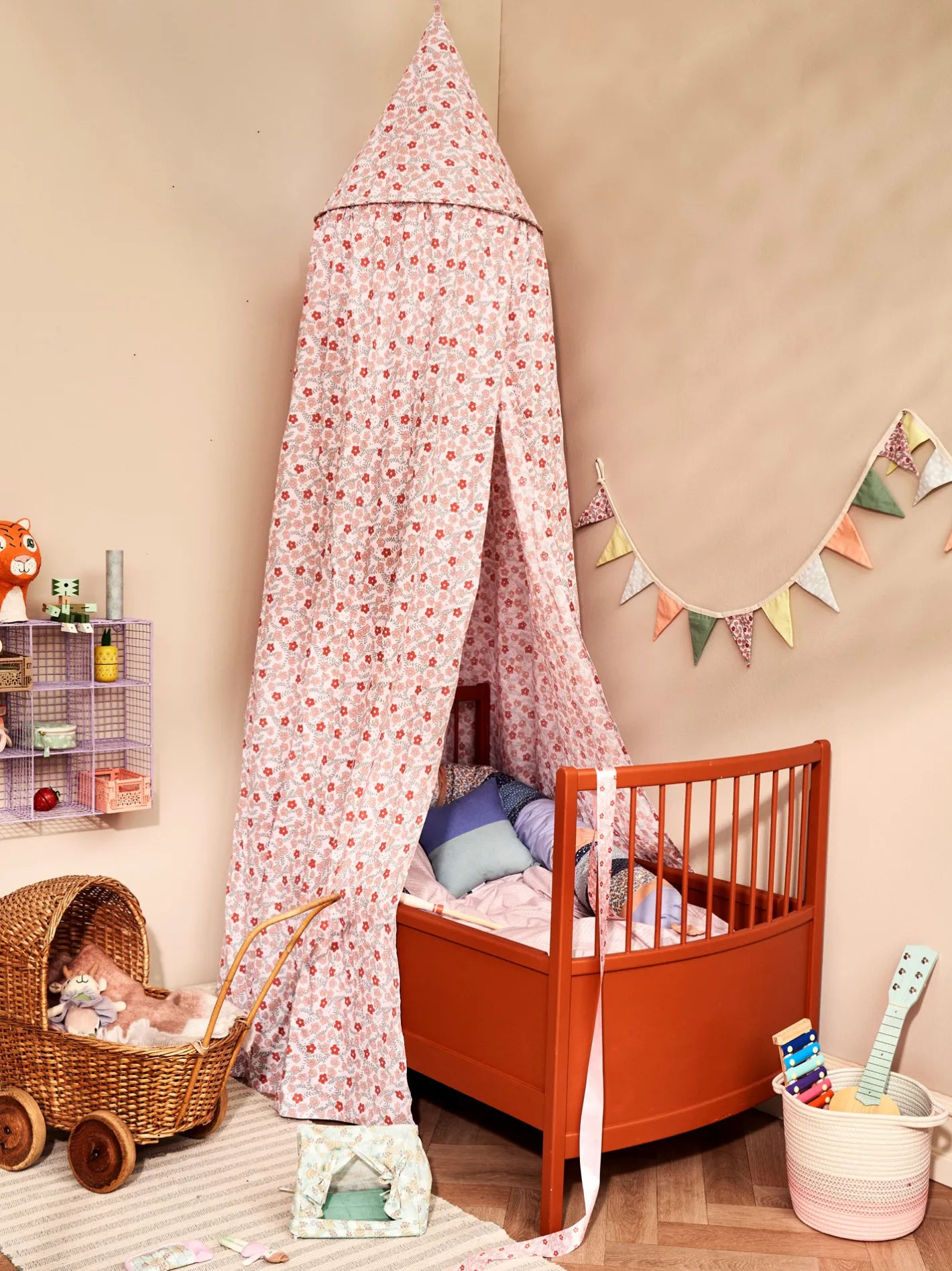 Søstrenes sengehimmel er lavet af STANDARD 100 by OEKO-TEX®-certificeret* bomuld og hænges på en metalring. Ringen har en diameter på 52 cm, og selve sengehimlen har en længde på 240 cm.* 21.HIN.63231.HOHENSTEIN HTTI