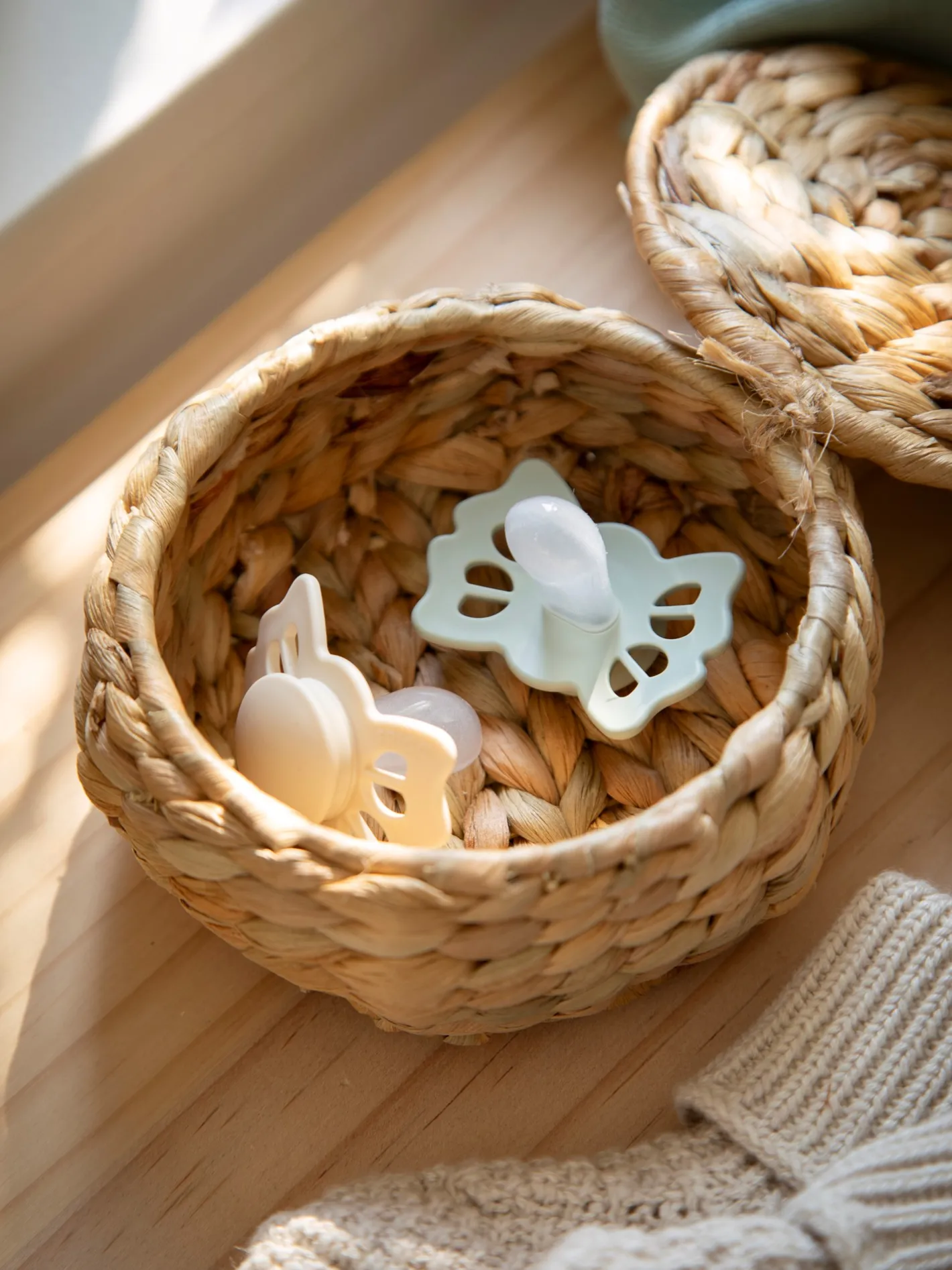 Lucky-sutterne fra det danske mærke FRIGG er designet og produceret i Danmark. Pakken indeholder 2 FRIGG-sutter. Sutterne har låsemekanismen click-lock® og en ny SilkySoft™ overflade. Sutten er lavet af medicinsk silikone og kommer i en størrelse 1, ideel til alderen 0-6 måneder. Sutten har en symmetrisk form og måler 27 mm. Lucky-sutterne fra FRIGG er inspireret af firkløveren. Denne pakke indeholder en Cream-farvet sut og en Sage-farvet sut. Søstrene gør opmærksom på, at sutterne bør udskiftes hver 4.-8. uge af hygiejniske årsager og for optimal sikkerhed. De bør altid tjekke sutten før brug og kassere den ved første tegn på beskadigelse eller slid.
