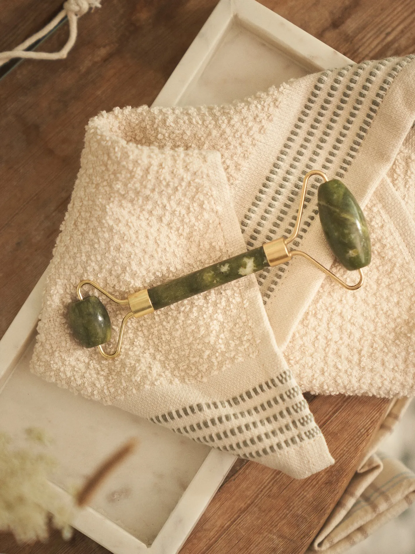 Søstrenes ansigtsrulle er lavet af nefritjade.