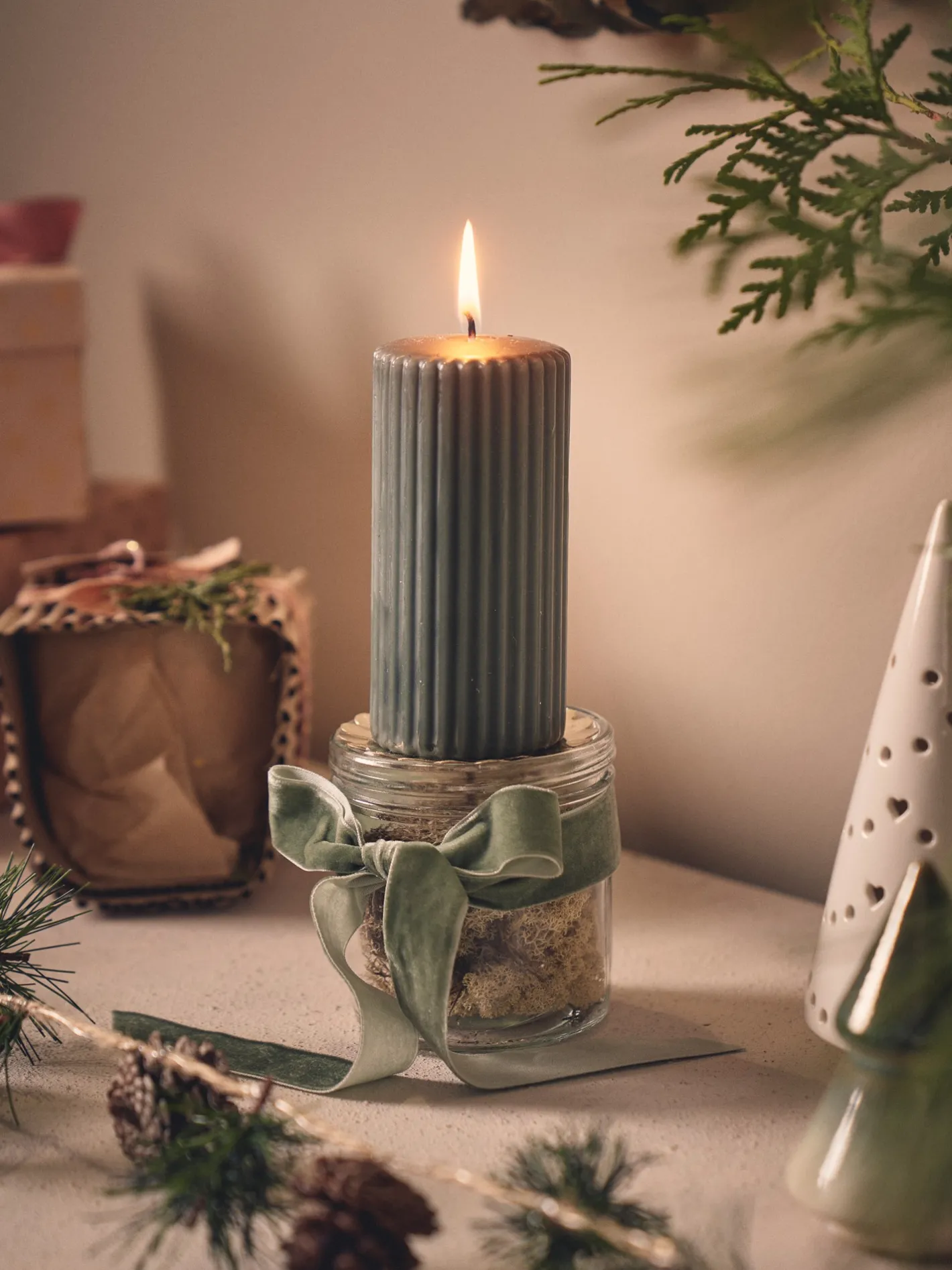 Søstrenes bloklys med riller har en omtrentlig brændetid på 35 timer.