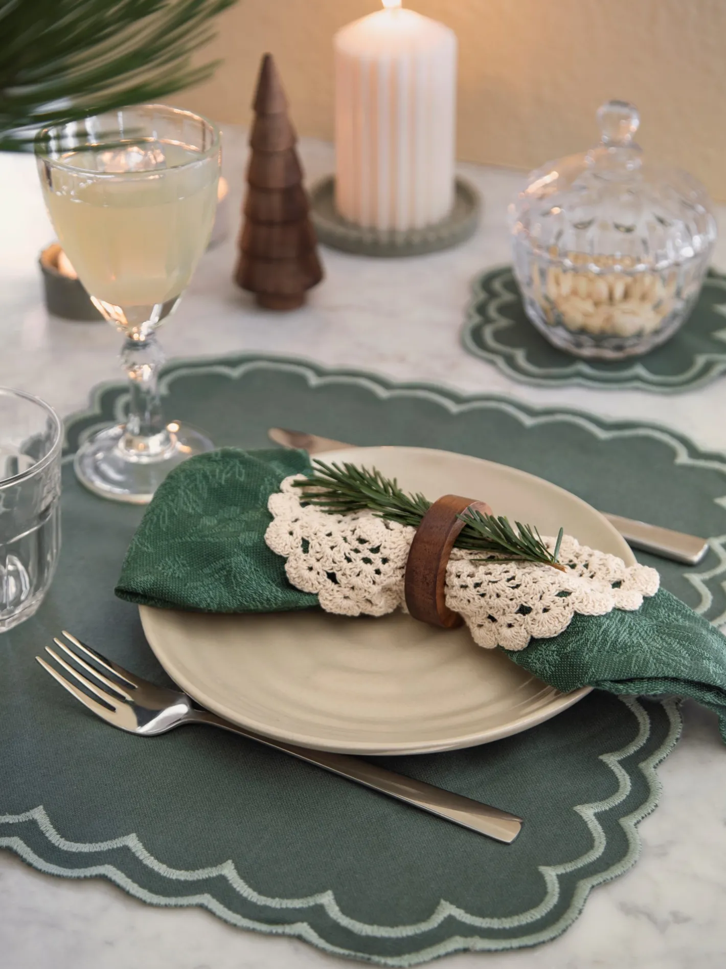 Søstrenes dækkeserviet er lavet af STANDARD 100 by OEKO-TEX®-certificeret bomuld.