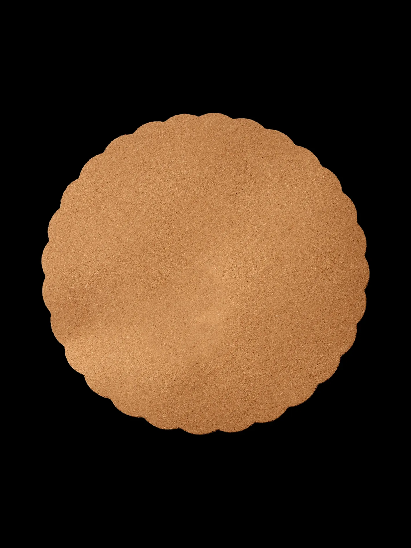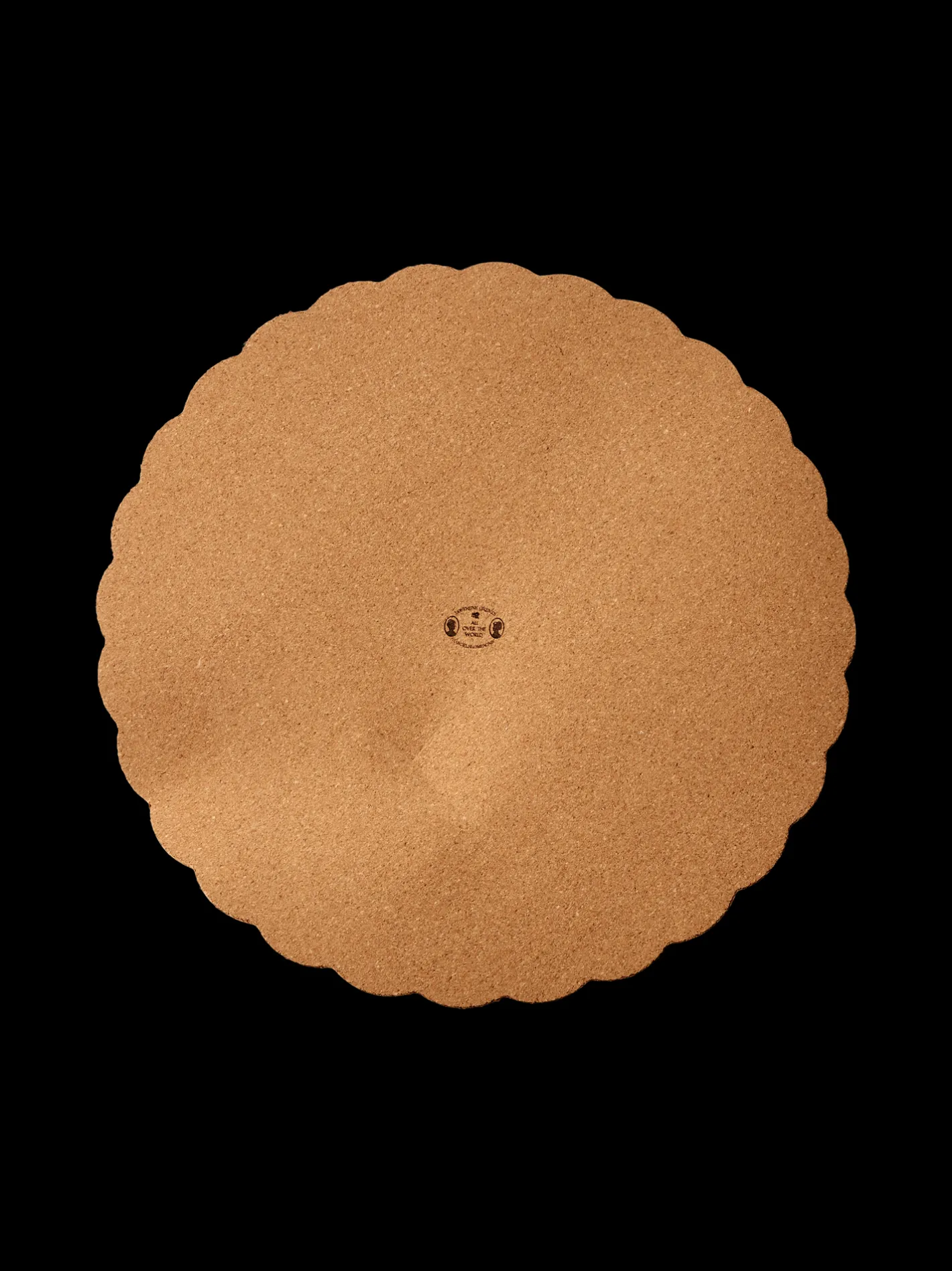 Søstrenes dækkeserviet er lavet af kork og måler Ø37 cm.