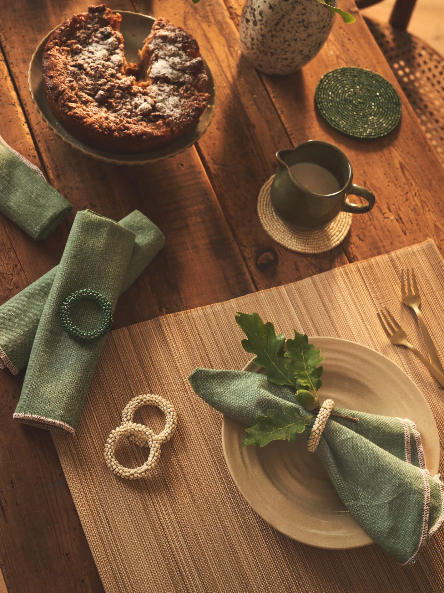 Søstrenes dækkeservietter er lavet af FSC®-certificeret bambus, og en pakke indeholder 2 stk. Hver dækkeserviet måler 45 x 35 cm.
