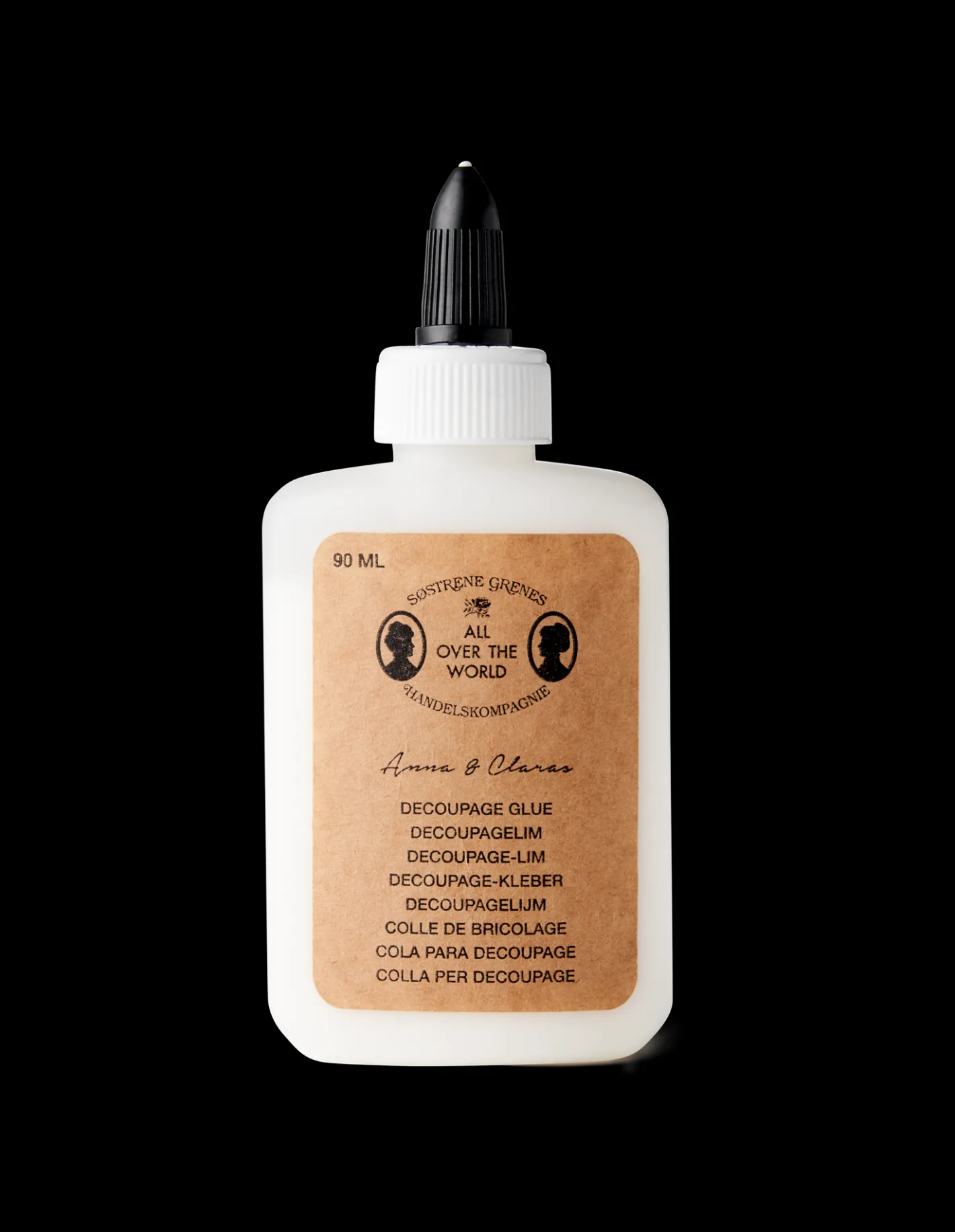 Anna er særdeles glad for at være kreativ, og timerne forsvinder nemt, når lim og servietter findes frem til decoupage. ”Det er en vidunderlig teknik,” siger Anna, imens hun kommer lidt decoupagelim på en lille trækasse. Vær kreativ og dekorér yndige syltetøjsglas, små kasser, sten eller bakker. ”Det er en særdeles morsom aktivitet for de kære små,” smiler Anna.Søstrenes decoupagelim er et væsentligt element, når De ynder at decoupere. Søstrene foreslår, at De påfører limen med en decoupage pensel.