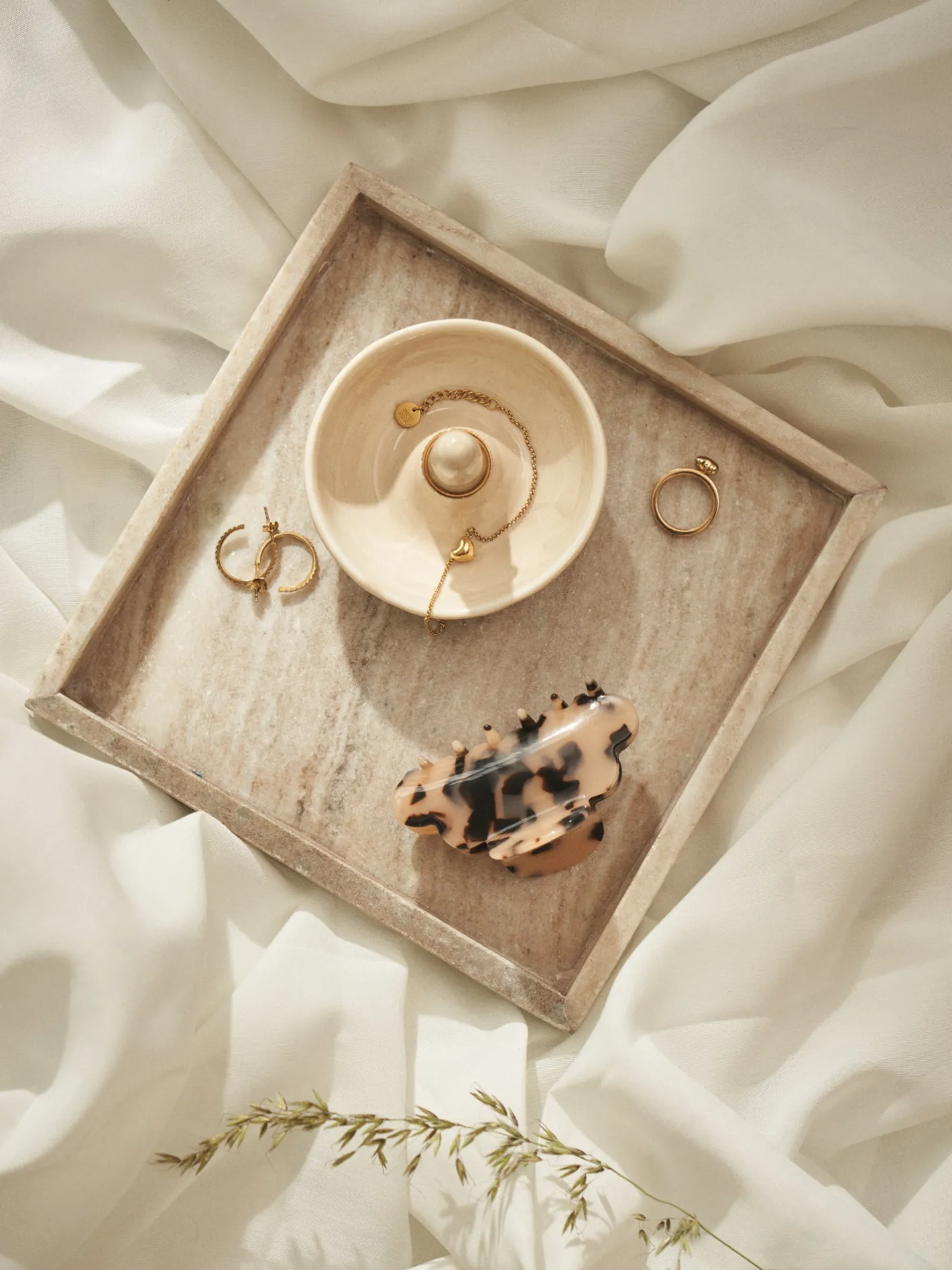 De kan bruge denne dekorative bakke til at arrangere små fund på eller bruge den som midtpunkt på Deres sofabord.Da marmor er et naturmateriale, gør søstrene opmærksom på, at produktet kan variere en smule i farven og udtrykket.