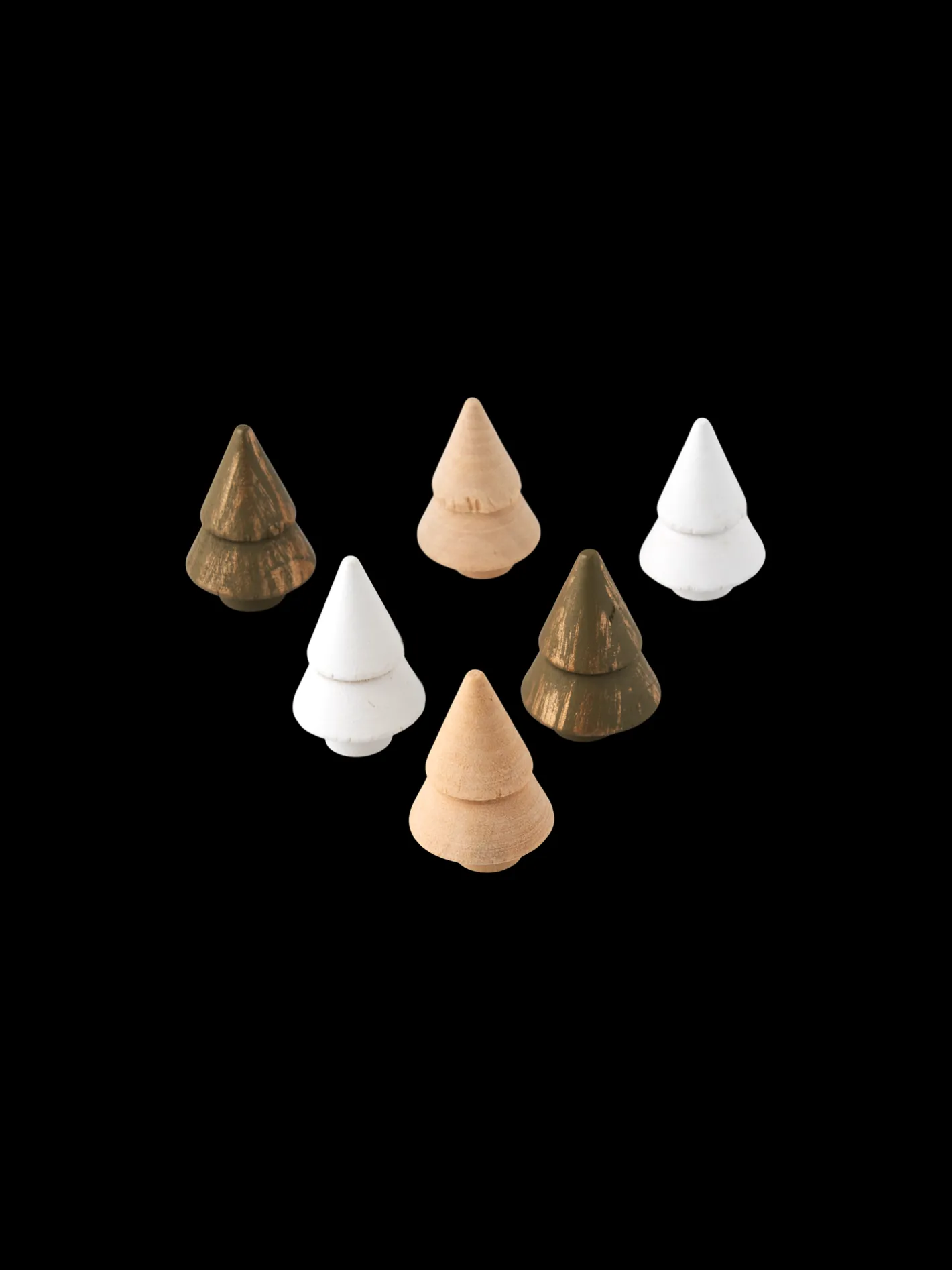 Søstrenes dekorative juletræer er lavet af 100% FSC®-certificeret poppeltræ. Hver pakke indeholder 6 stk.