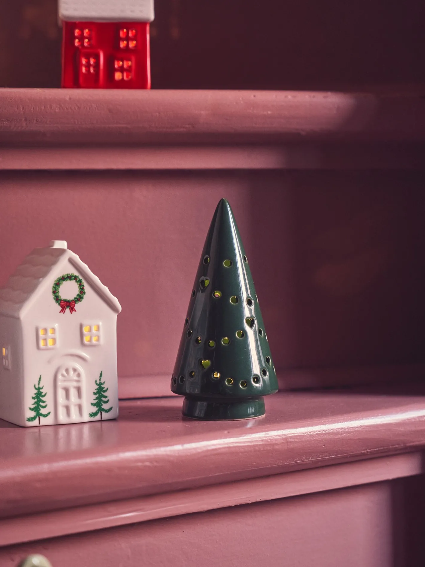 Søstrenes keramiktræ med LED kommer med de nødvendige batterier.De kan arrangere søstrenes forskellige træer til et charmerende lille julelandskab og tilføje fine, dekorative huse for et endnu mere festligt udtryk.Søstrene gør venligst opmærksom på, at farve og udtryk kan variere en smule, da dette er et glaseret produkt.