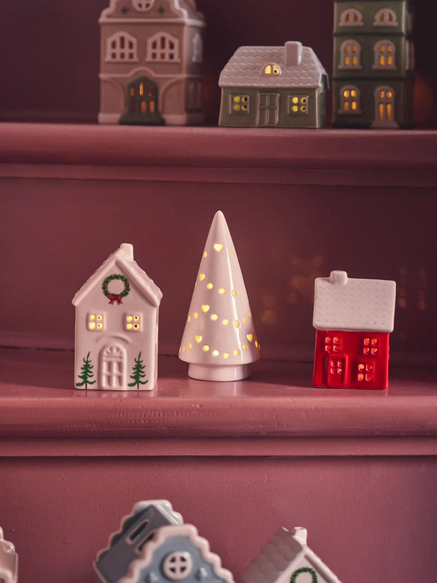 Søstrenes keramiktræ med LED kommer med de nødvendige batterier.De kan arrangere søstrenes forskellige træer til et charmerende lille julelandskab og tilføje fine, dekorative huse for et endnu mere festligt udtryk.Søstrene gør venligst opmærksom på, at farve og udtryk kan variere en smule, da dette er et glaseret produkt.
