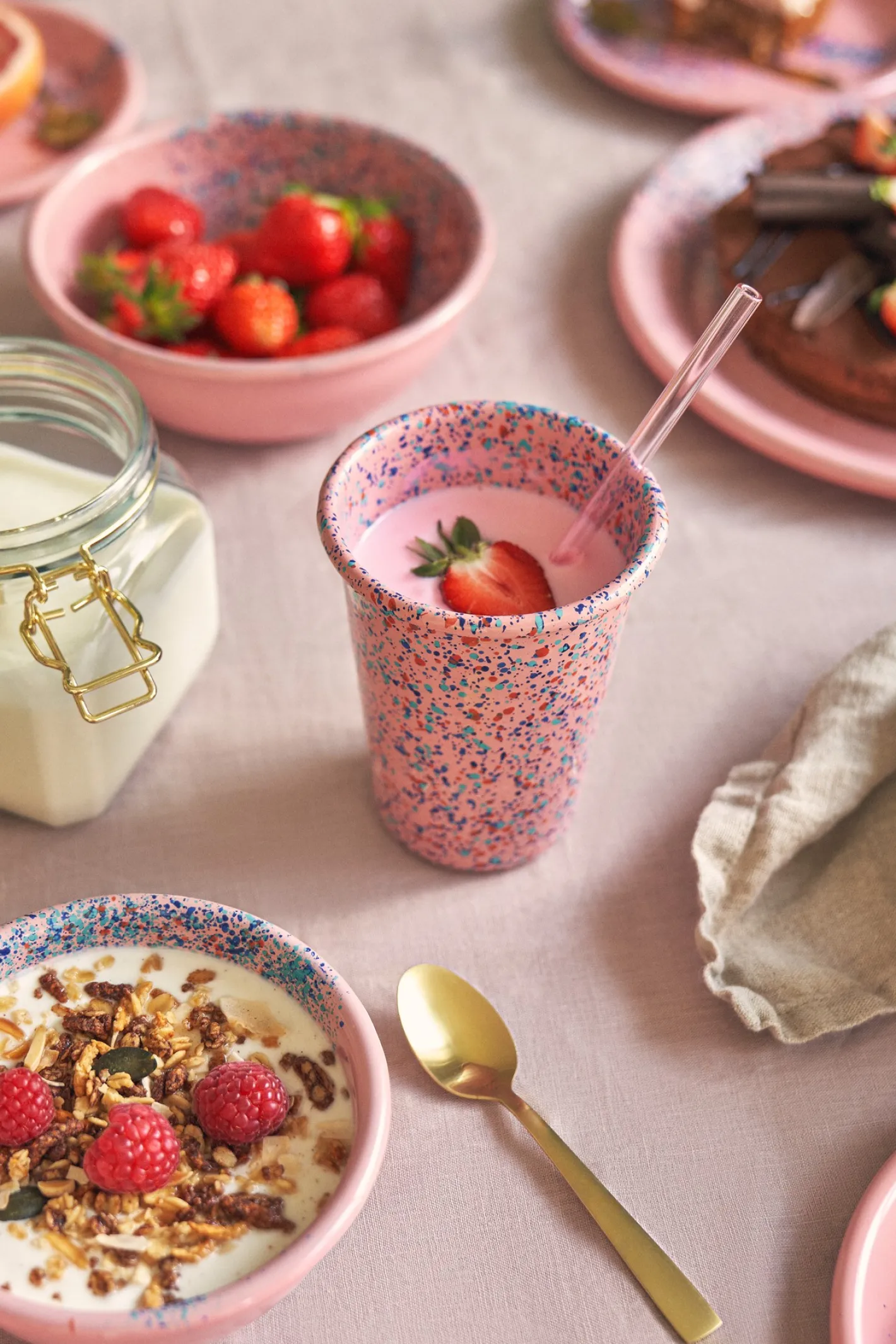 Søstrene gør Dem venligst opmærksom på, at denne vare kun forhandles online.Flow Fest glasset fra Kapka kan indeholde 400 ml. Den kan tåle opvaskemaskine.”Det ligner næsten konfetti,” udbryder nevøen, mens han klinker den mod Claras glas med et grin. Søstrene har inviteret børnene på en picnic i deres yndlingspark. Deres picnickurv er fyldt til randen med delikate snacks, forfriskende drikkevarer og praktisk service.”Denne type service er yderst praktisk til picnicture, da den er så let og robust,” forklarer Clara. “Du har ret, kære søster. Men det tager sig også smukt ud på et veldækket bord derhjemme,” tilføjer Anna med et smil.Søstrene minder Dem venligst om at være forsigtig, når stålelementerne er fyldte med varme væsker.