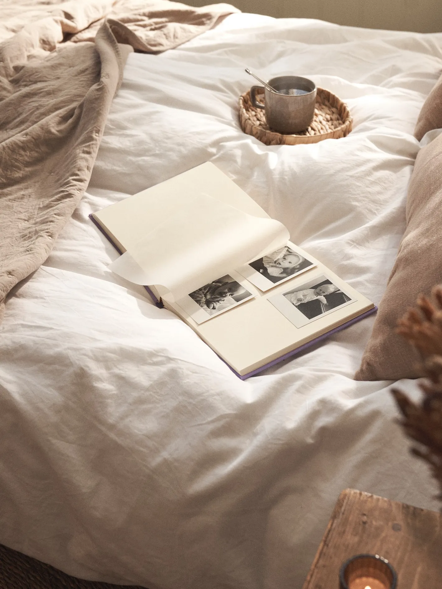 Fotoalbummet fra Semikolon består af sider af hvidt Efalin-papir og er lærredsindbundet. Den måler 24 x 23 cm og har 60 sider à 230 gsm. Mellem siderne ligger ark af fint glanspapir for at beskytte Deres billeder.