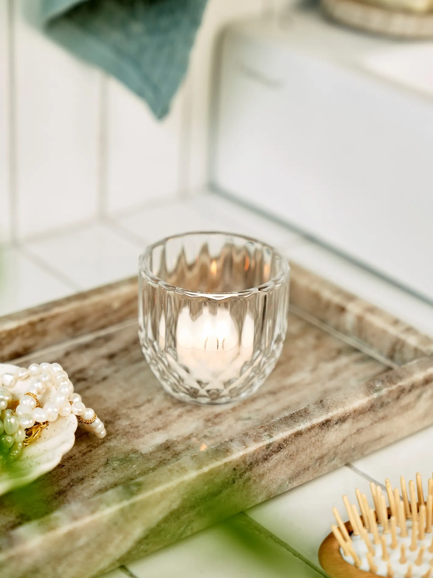 Søstrenes fyrfadsstage måler 6,5 cm i diameter og 5,5 cm i højden.