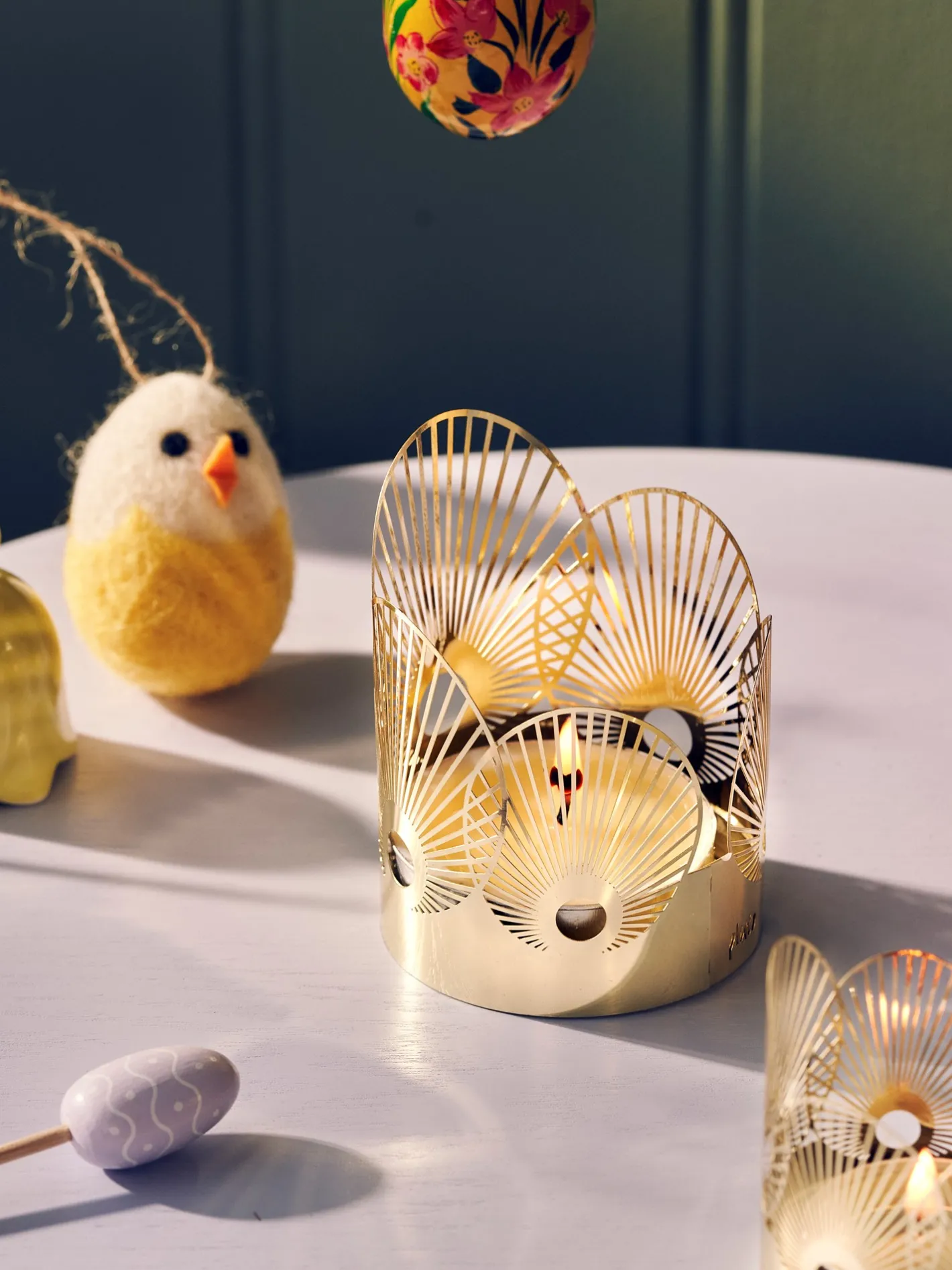 Den elegante lysestage fra det svenske mærke Pluto er en skøn tilføjelse til ethvert hjem. De gyldne gitterdetaljer reflekterer lyset smukt og skaber charmerende blafrende skygger.Søstrene bemærker venligt, at denne lysestage kommer med 1 fyrfadslys.