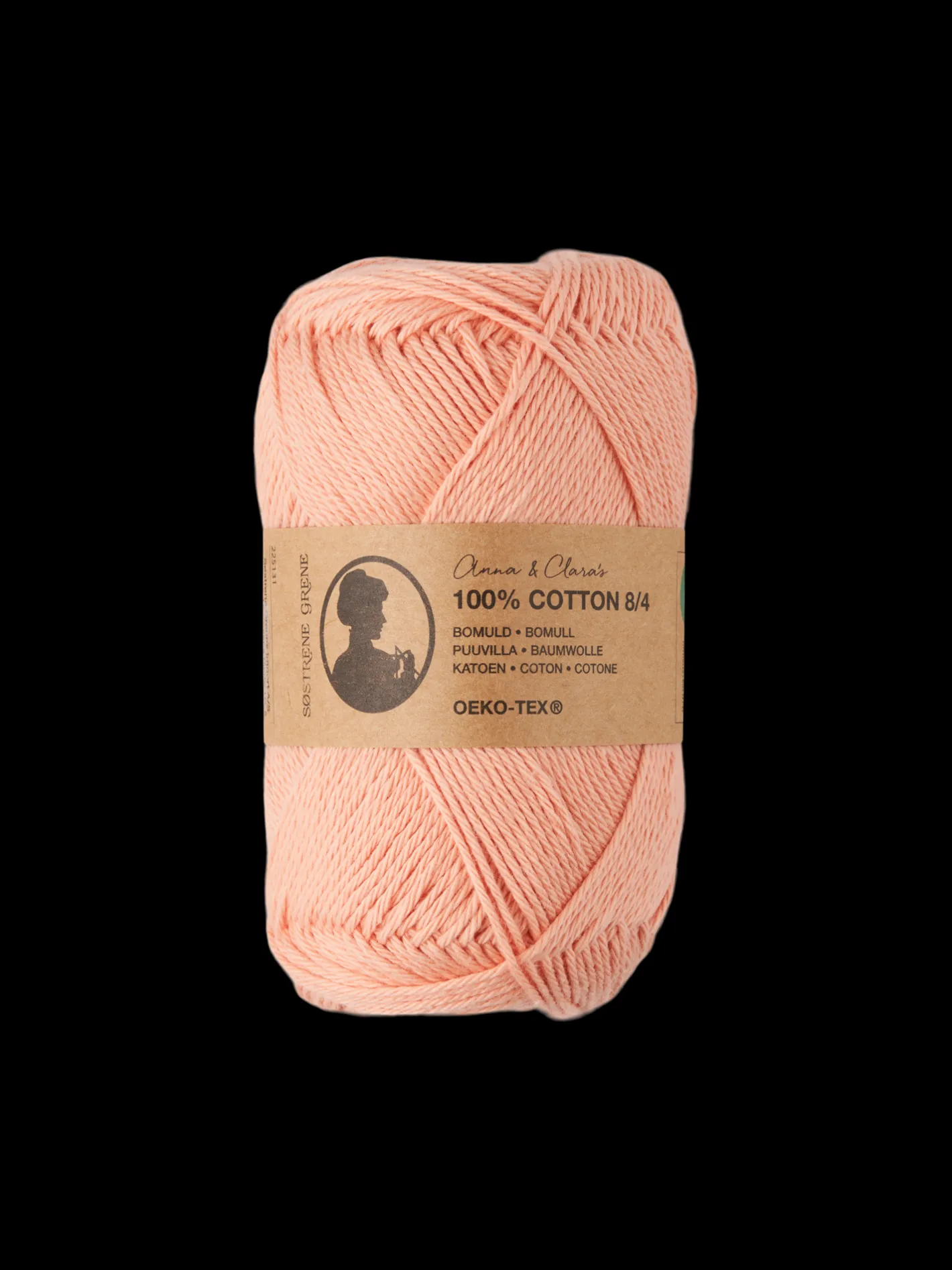 Søstrenes vidunderlige 8/4 bomuldsgarn er lavet af 100 % bomuld og er STANDARD 100 by OEKO-TEX®-certificeret*. Søstrene anbefaler, at De bruger en hæklekrog eller strikkepinde i størrelse 2,5-3 mm.*17.HIN.13831 HOHENSTEIN HTTI.