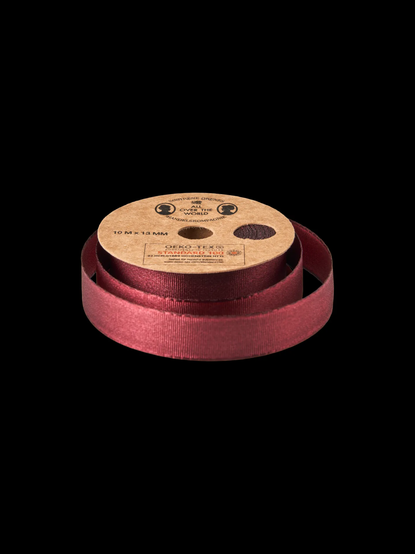 Søstrenes bånd er lavet af STANDARD 100 by OEKO-TEX®-certificeret polyester. Det måler 13 mm x 10 m.”Båndet er prikken over i’et på gaveindpakningen,” siger Clara.