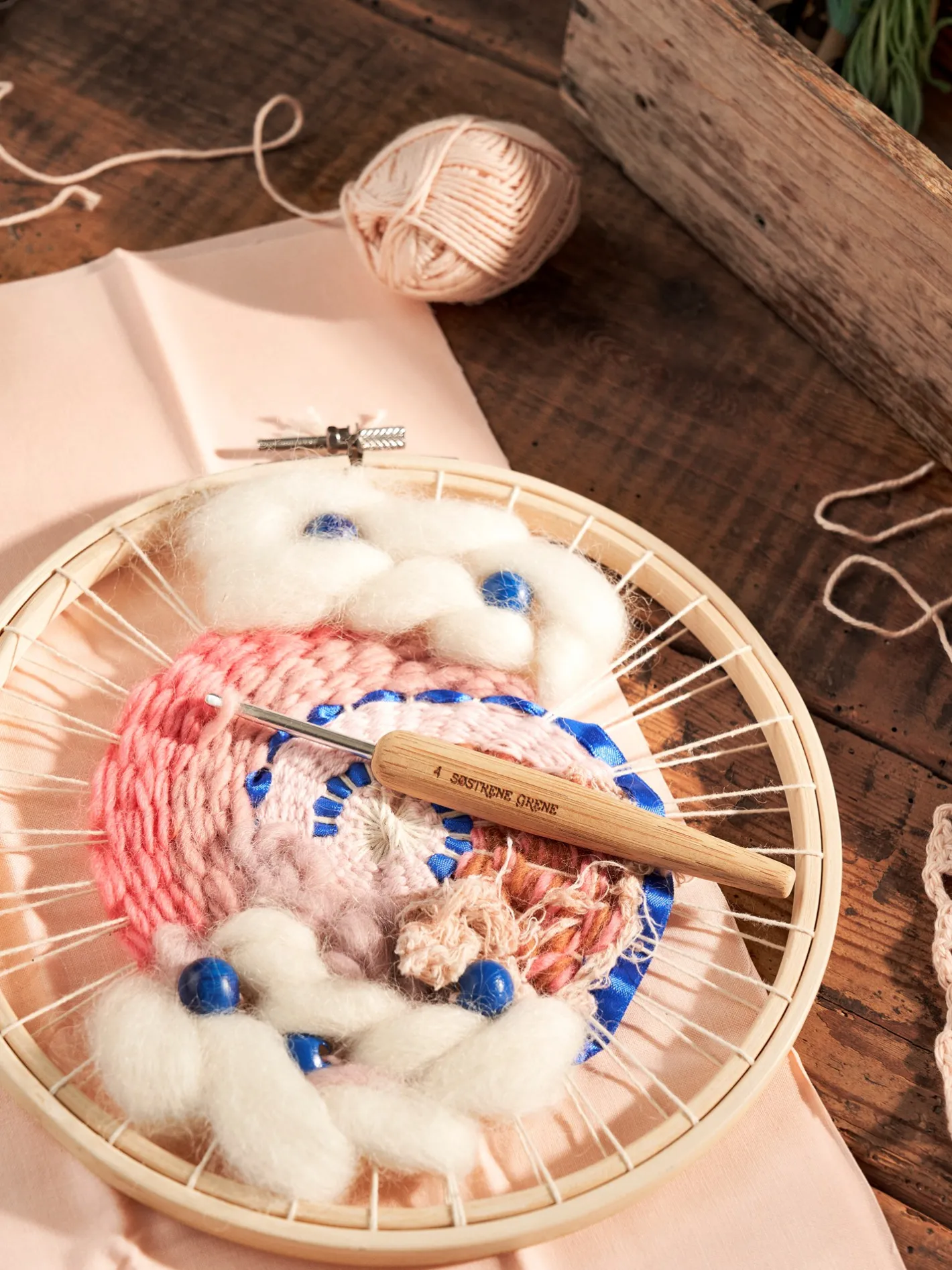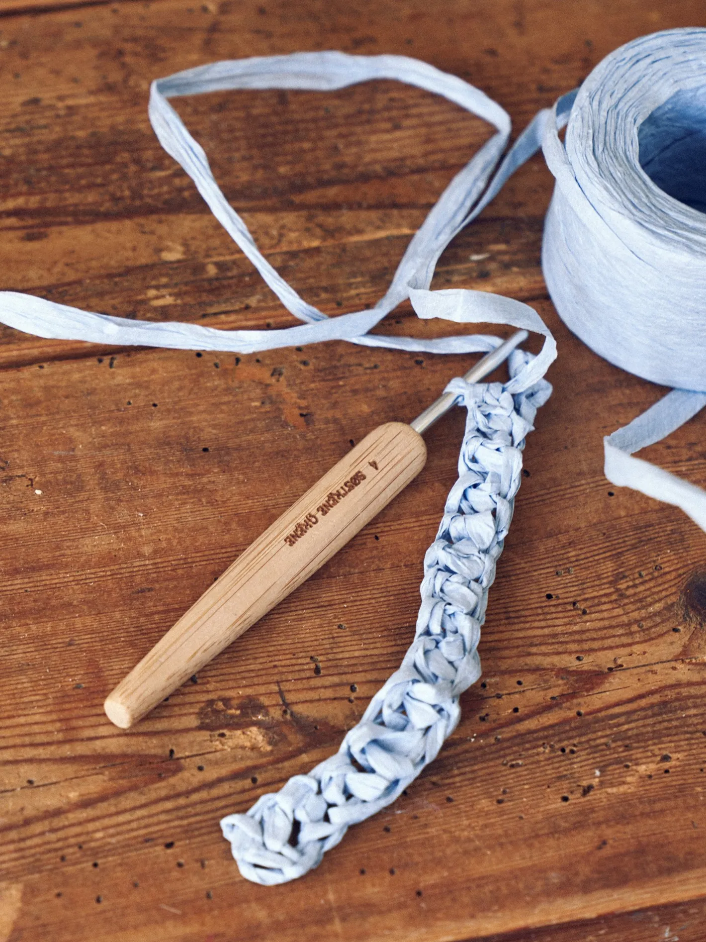 Søstrenes hæklenål er lavet af bambus, og har en størrelse på 4 mm.