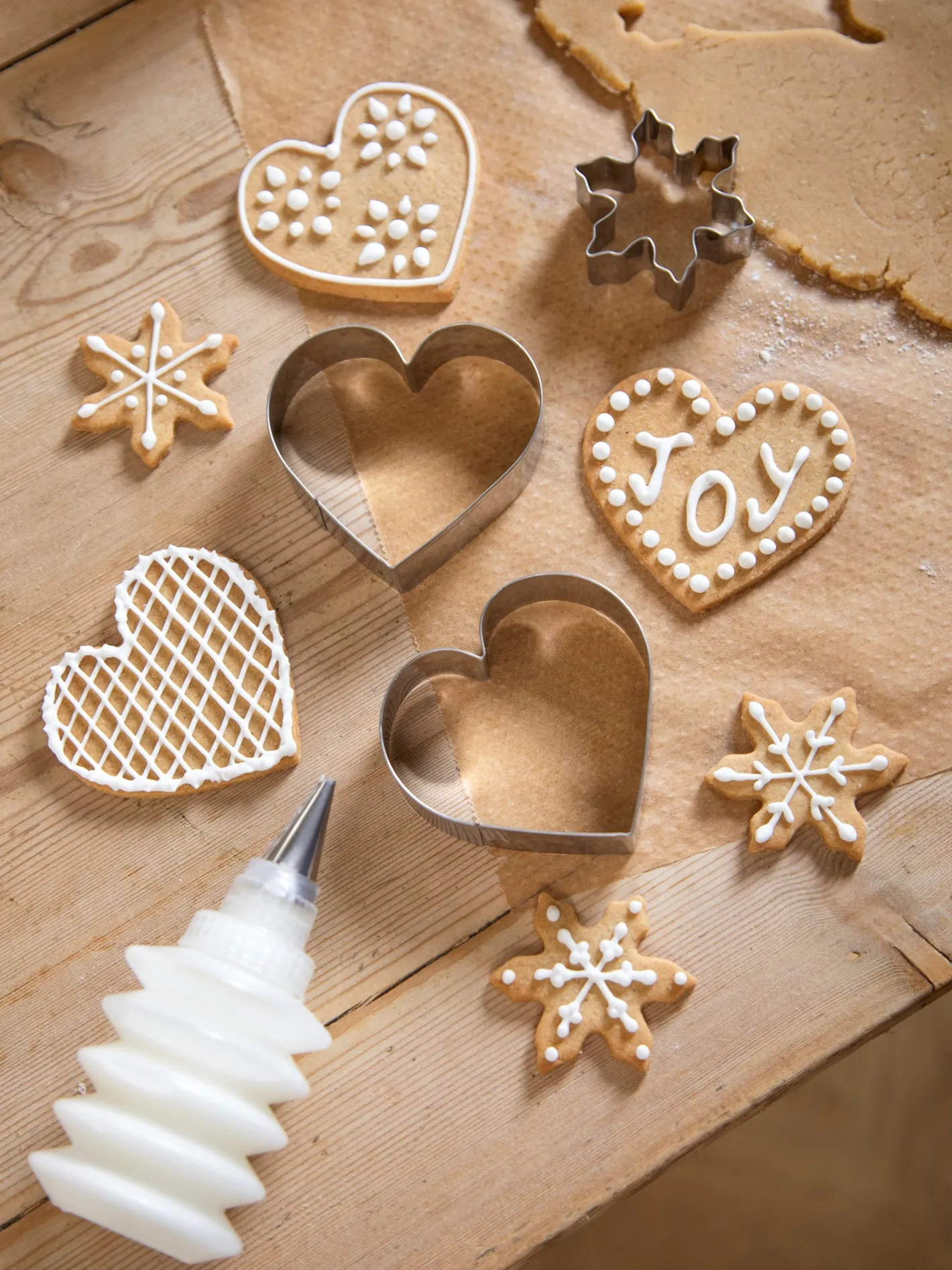 Søstrenes kageudstikker er lavet af rustfrit stål og har form som et hjerte.
