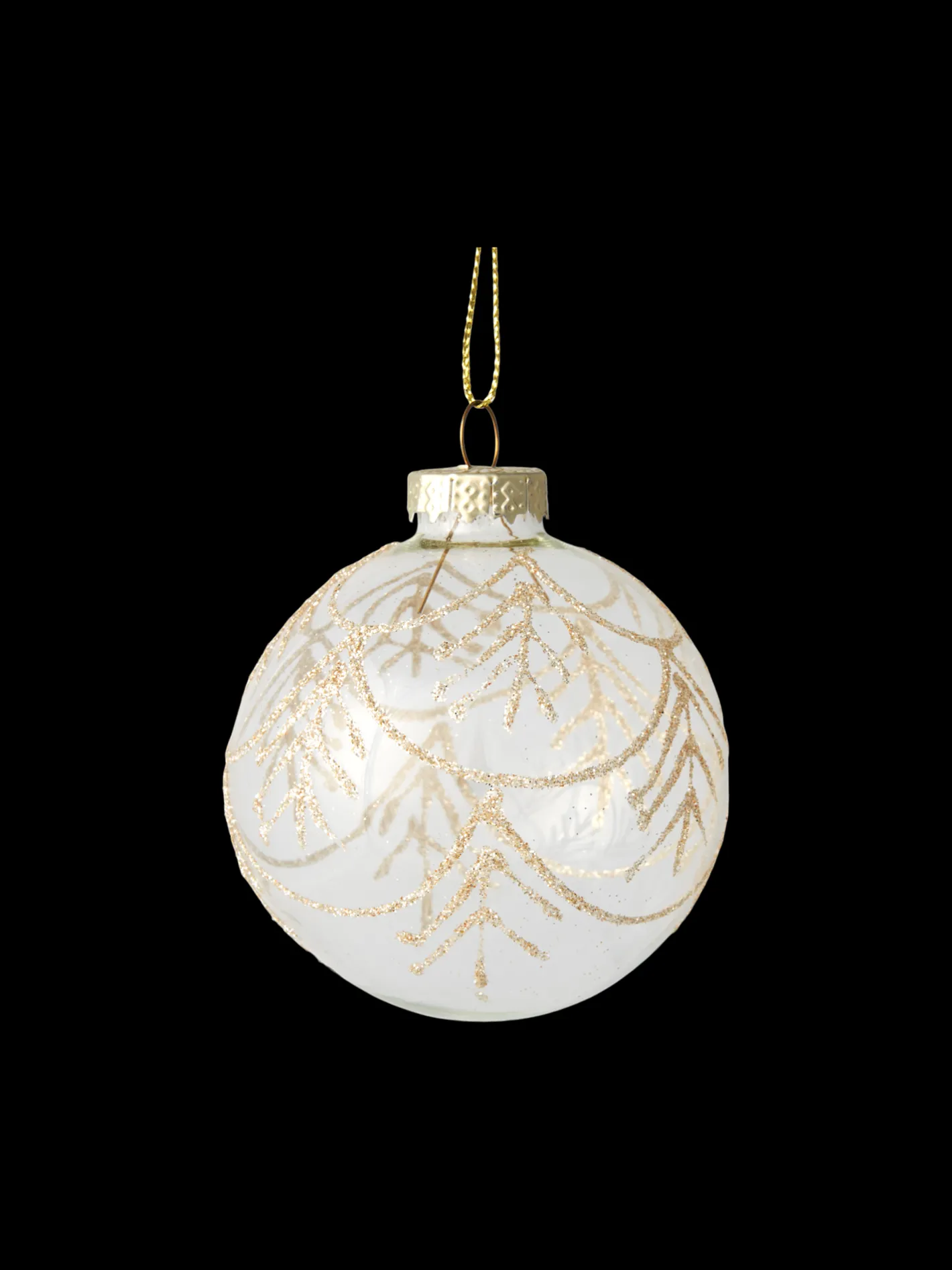 Søstrenes julekugle er lavet af glas og har en diameter på 7 cm.
