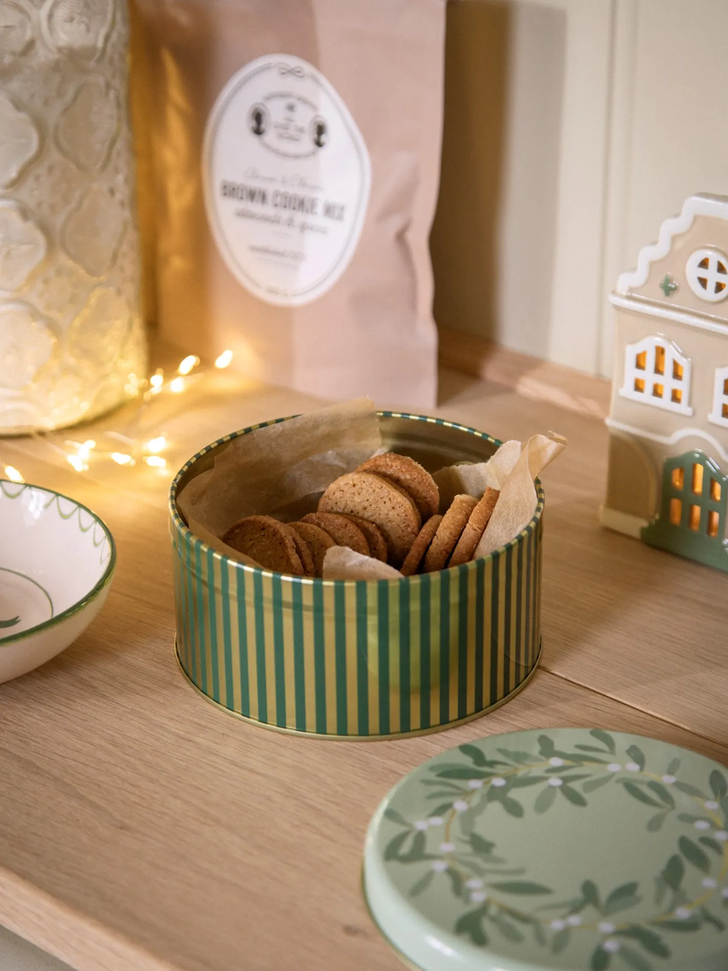 Søstrenes småkagedåse har et smukt juledesign og er ideel til at opbevare julesmåkager og andre lækkerier.