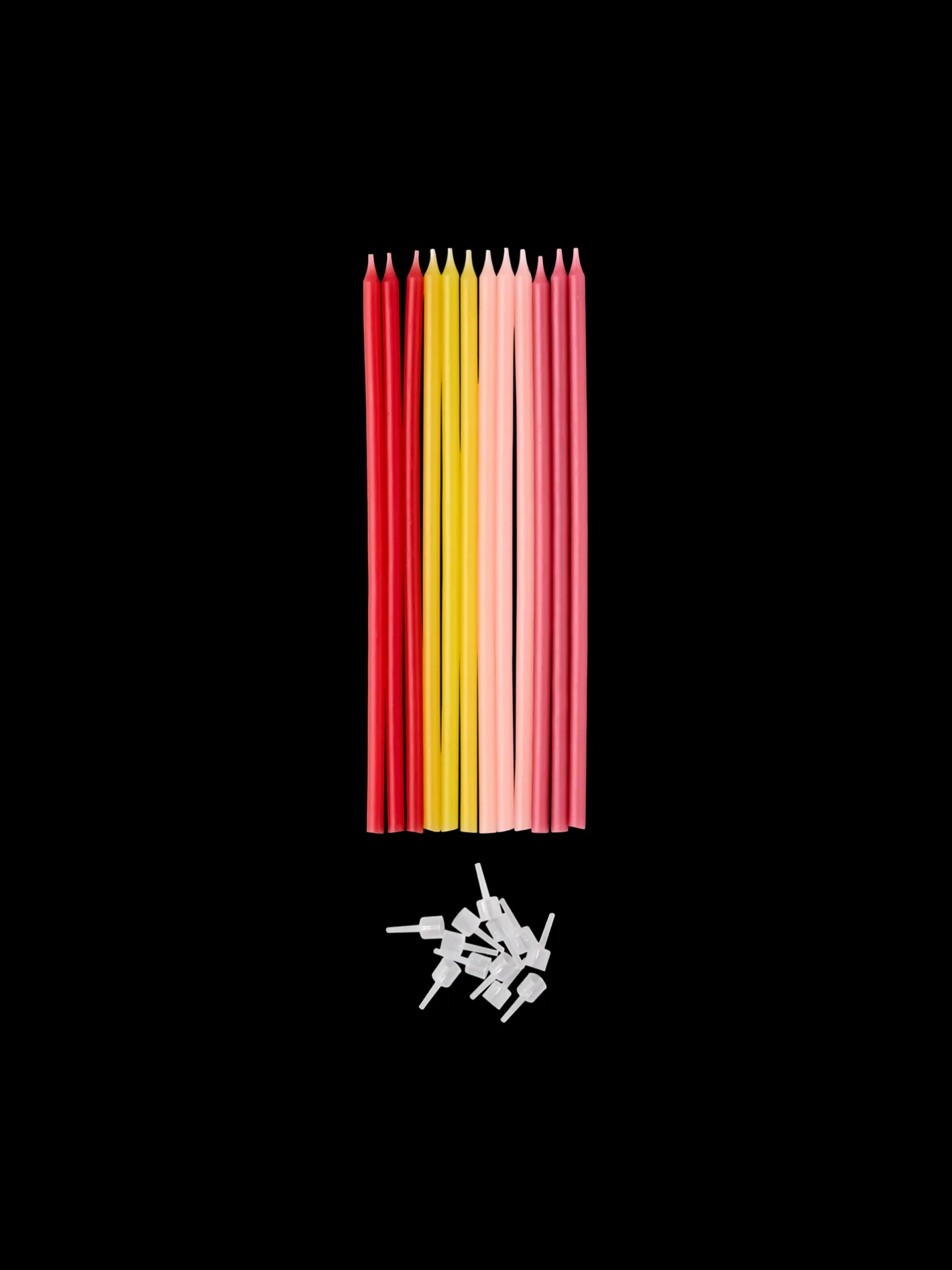 Søstrenes kagelys kommer i et sæt med 12 lys og 12 gennemsigtige holdere.