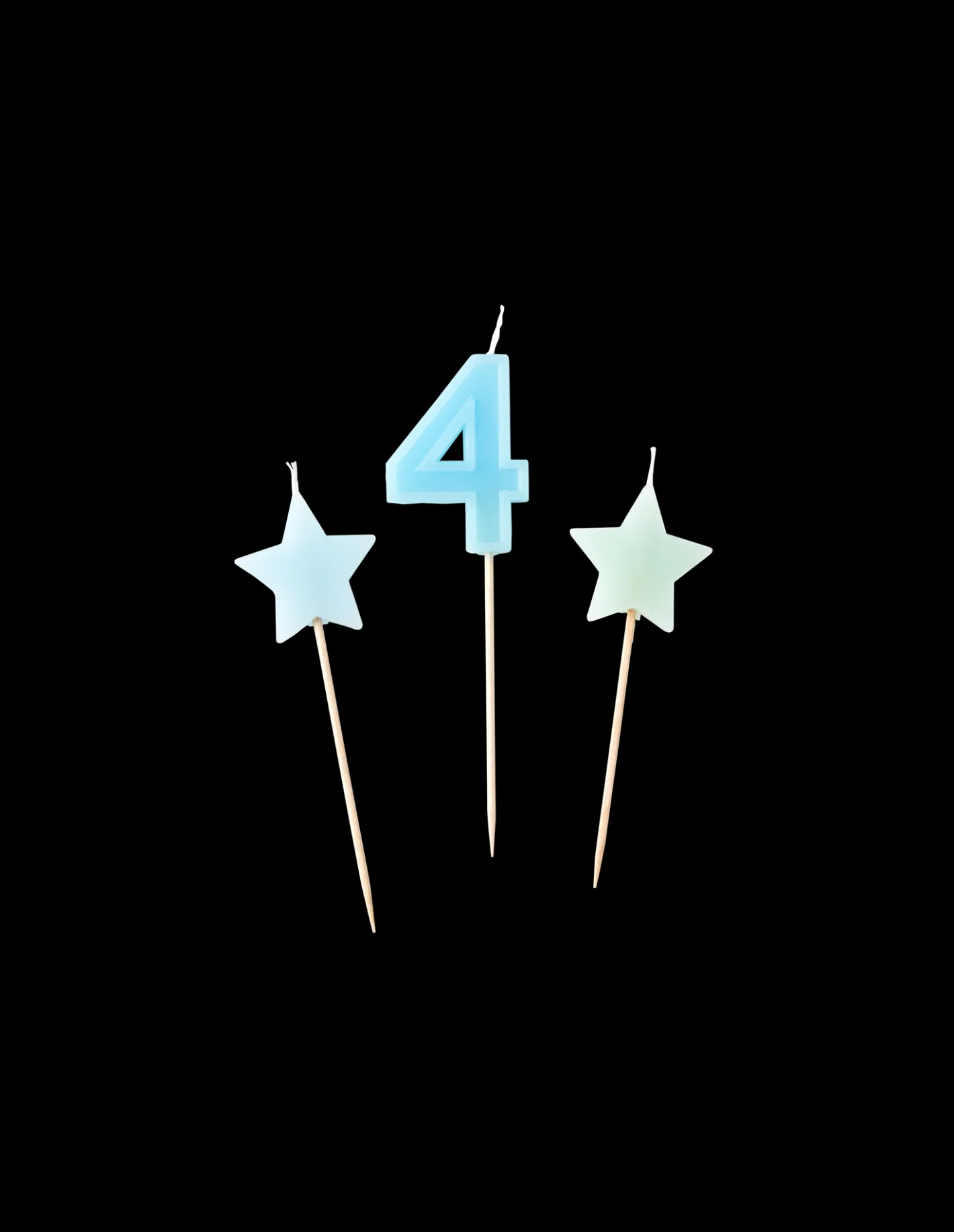 Søstrenes kagelys er lavet af paraffin, og hver pakke indeholder et tallys samt to stjerneformede lys. Tallet ‘4’ måler 11,5 x 3 cm, og de to stjerner måler hver 9 x 3 cm. Alle tre stearinlys kommer med et spyd, der måler 7 cm i længden. “Skønheden ligger i detaljerne,” som Anna og Clara gerne siger.