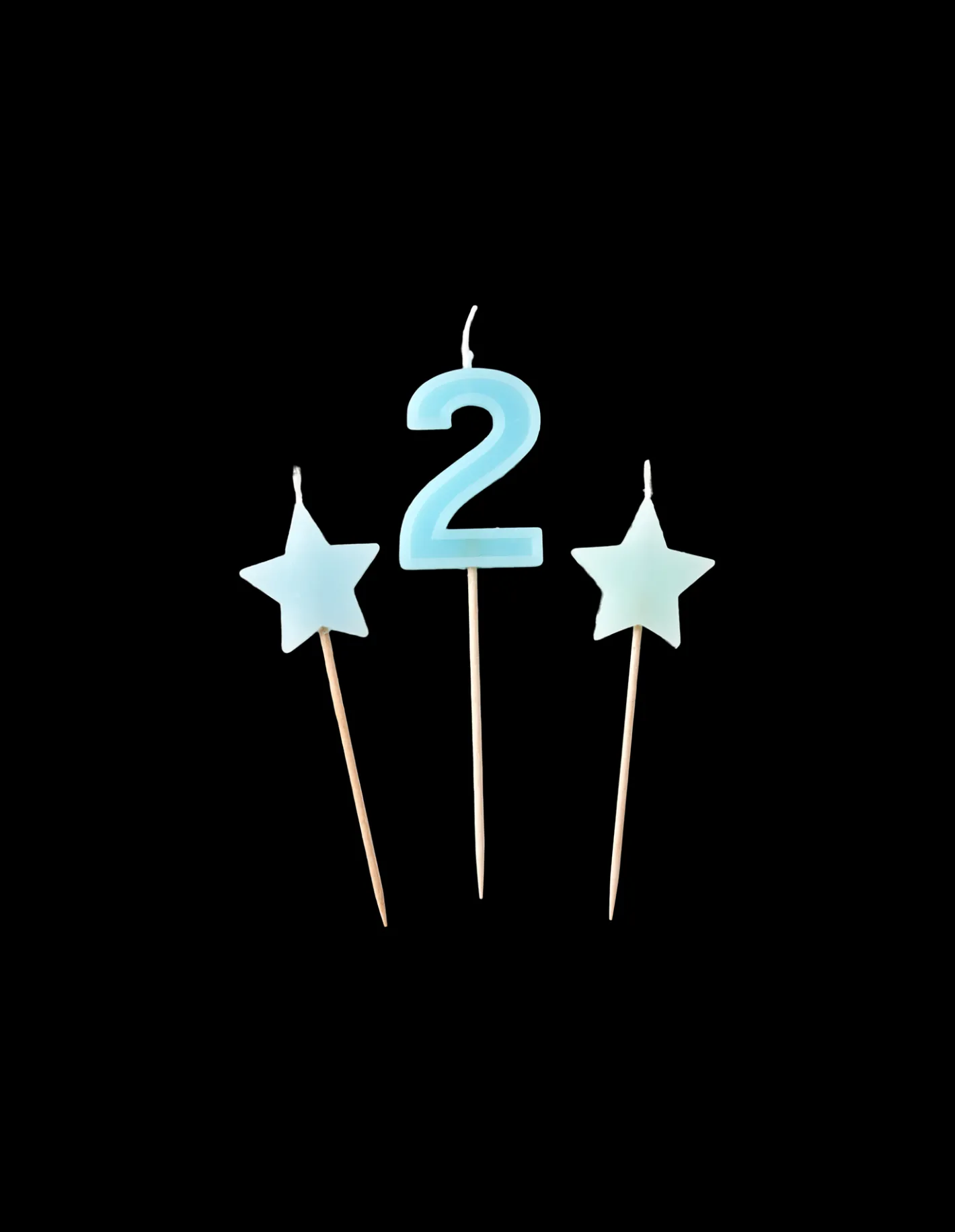 Søstrenes kagelys er lavet af paraffin, og hver pakke indeholder et tallys samt to stjerneformede lys. Tallet ‘2’ måler 11,5 x 3 cm, og de to stjerner måler hver 9 x 3 cm. Alle tre stearinlys kommer med et spyd, der måler 7 cm i længden. “Skønheden ligger i detaljerne,” som Anna og Clara gerne siger.