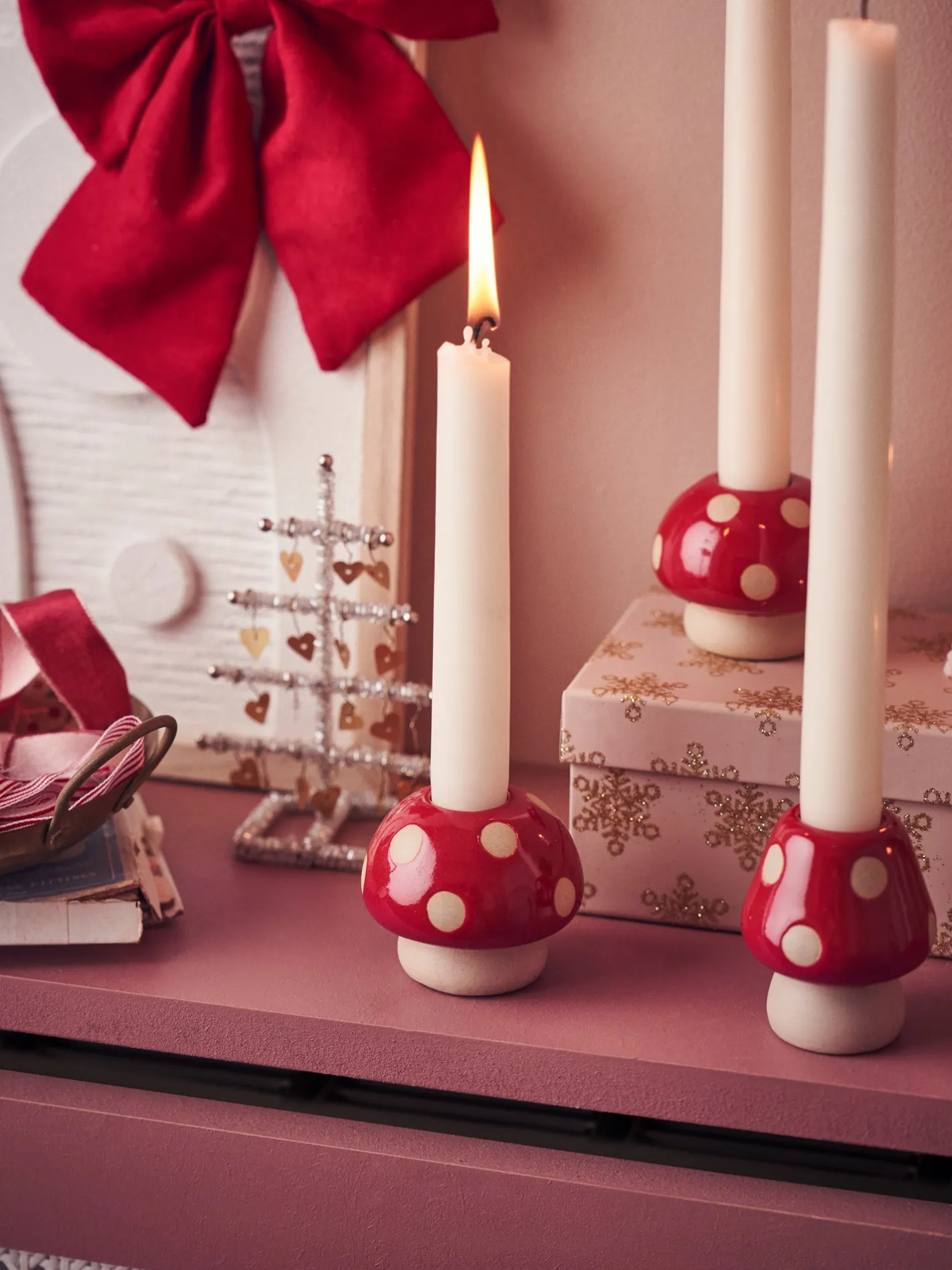 Søstrenes lysestage passer perfekt til søstrenes normale stearinlys med en diameter på 2,2 cm.Søstrene gør venligst opmærksom på, at farve og udtryk kan variere en smule, da dette er et glaseret produkt.