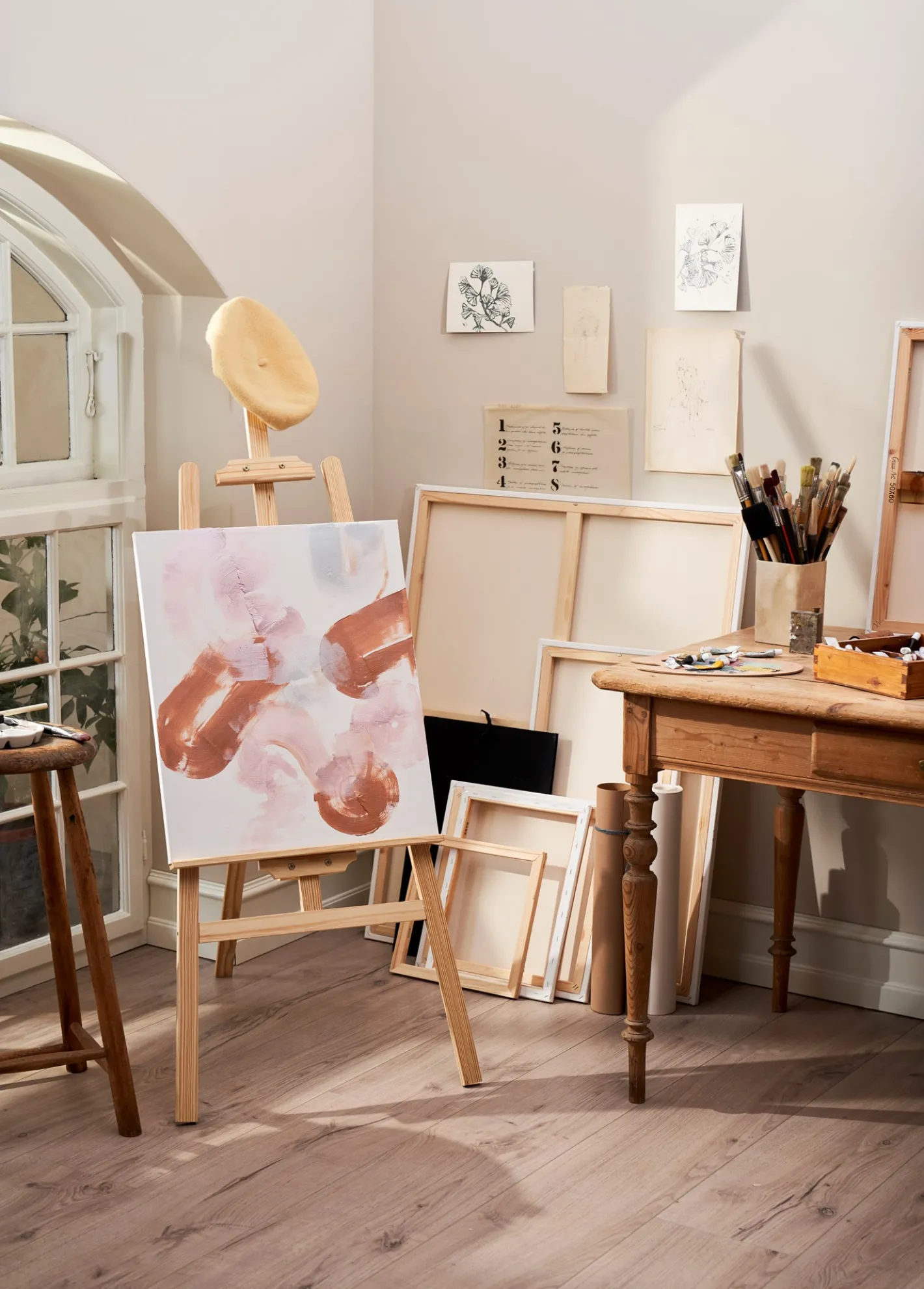 Når Anna har god tid til at fordybe sig i et kunstværk, laver hun en større opstilling i sit atelier. Hun finder staffeli og lærred frem, tænder for radioen, og straks svinger penslen i takt til de klassiske toner. Annas beholdning af lærreder er stort, og Clara har sorteret dem efter størrelser, så der altid er overblik over, hvor mange Anna har af hver. ”Hver størrelse tjener sit eget formål,” forklarer Anna, når Clara påpeger, at samlingen lige så stille vokser ud af det kunstneriske værksted.De finder malerlærreder i et utal af størrelser – find den størrelse, der passer til Deres næste projekt. Dette lærred måler 40 x 50 cm og egner sig særdeles godt til de større og mere omstændige kunstværker.