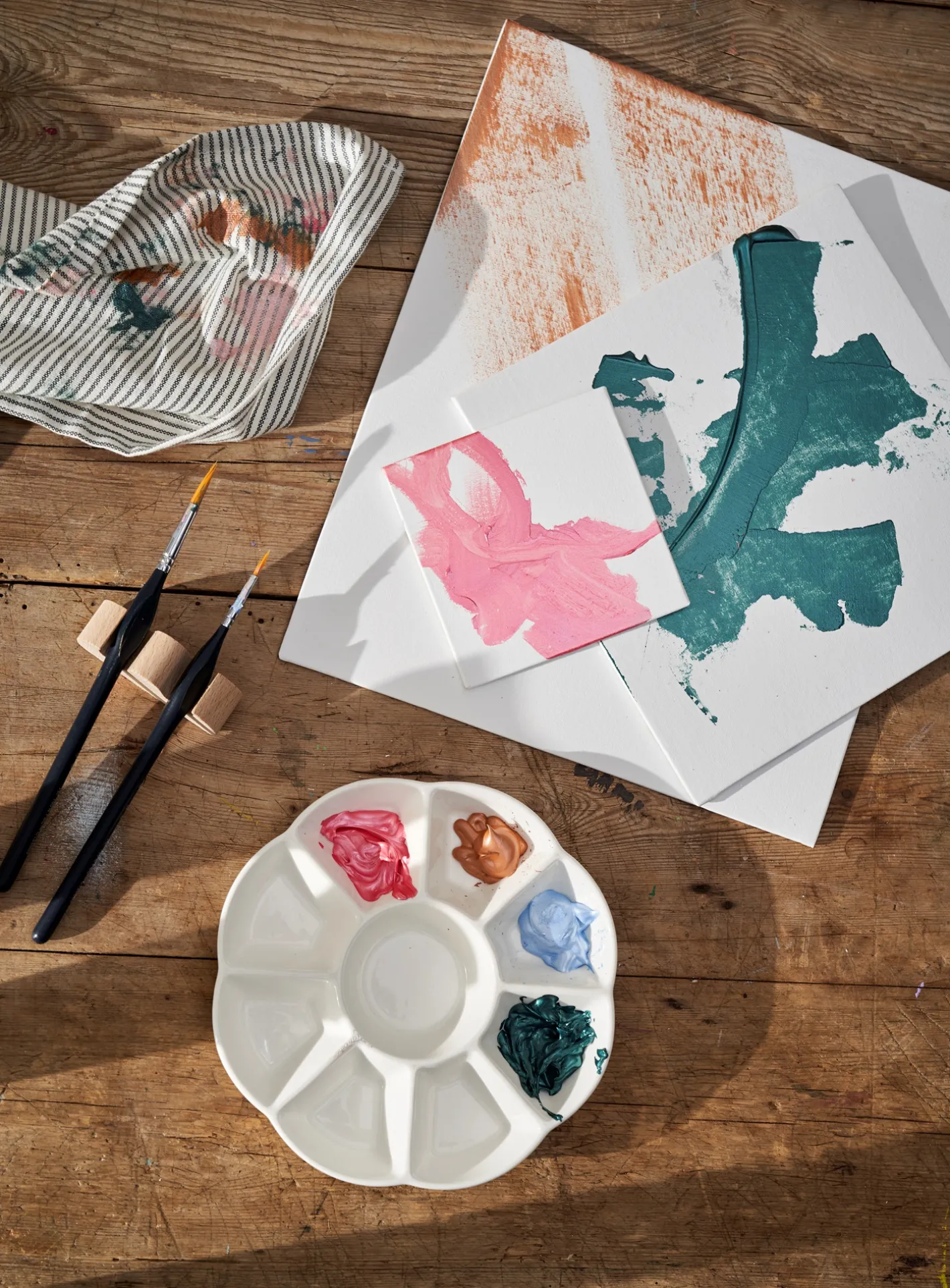 Søstrenes malerplade er perfekt til akvarel og måler 20 x 20 cm. Den er lavet af skum, bomuld og 100% FSC®-certificeret papir.