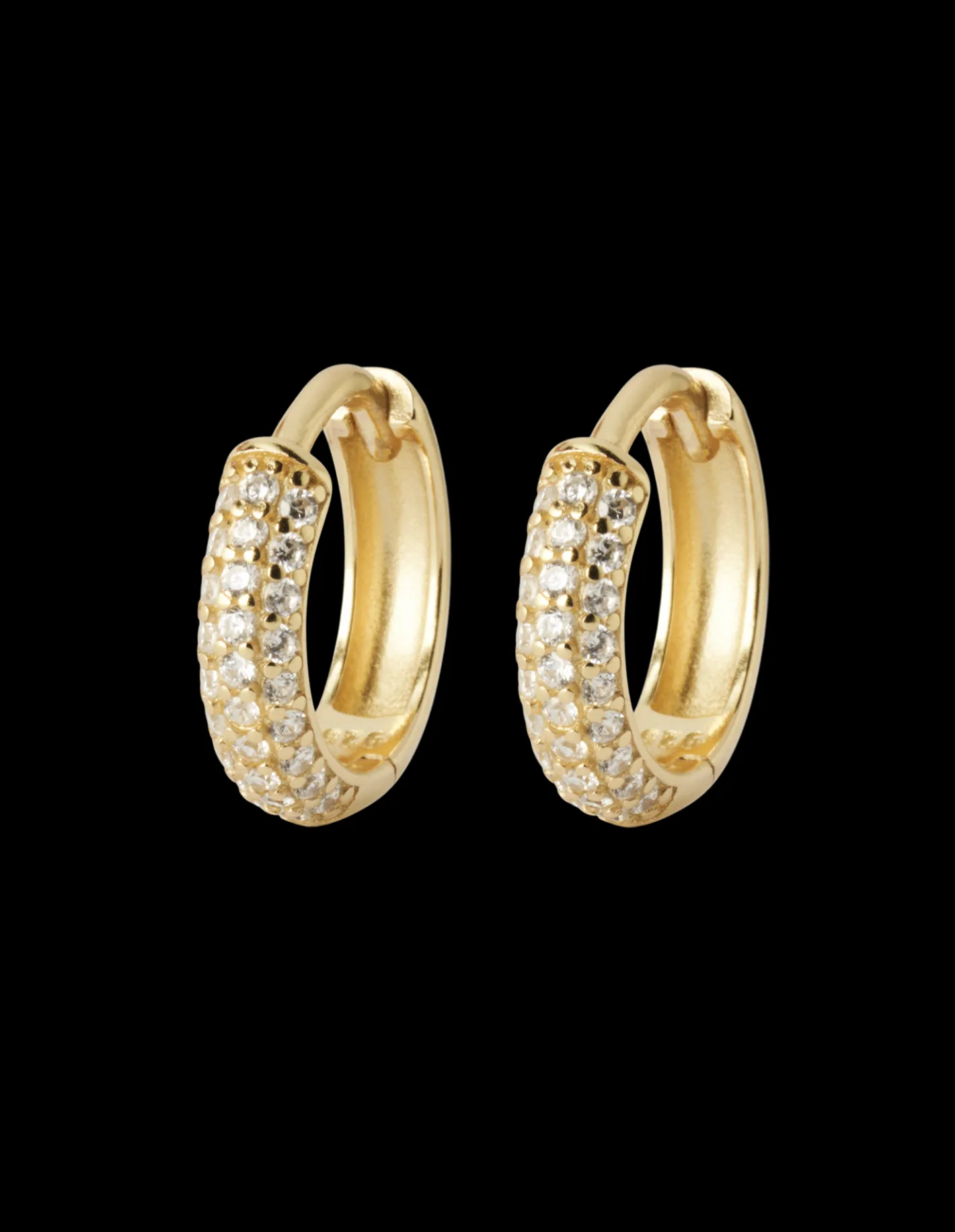 Søstrene gør Dem venligst opmærksom på, at denne vare kun forhandles online. Mary Hoops er lavet af 925 sterlingsølv, belagt med 18 karat guld og prydet med små cubic zirconia sten langs hoop-øreringene. De to øreringe måler 10 mm i diameter og kommer i en smuk, lille smykkeæske. “De fine Mary Hoops er en anelse glimtende og har en skinnende overflade for et mere eksklusivt udtryk,” bemærker Anna med et smil. Anna og Clara gør Dem venligst opmærksom på, at De bør undgå direkte kontakt med fugt og væske for en længere holdbarhed af guldbelægningen.