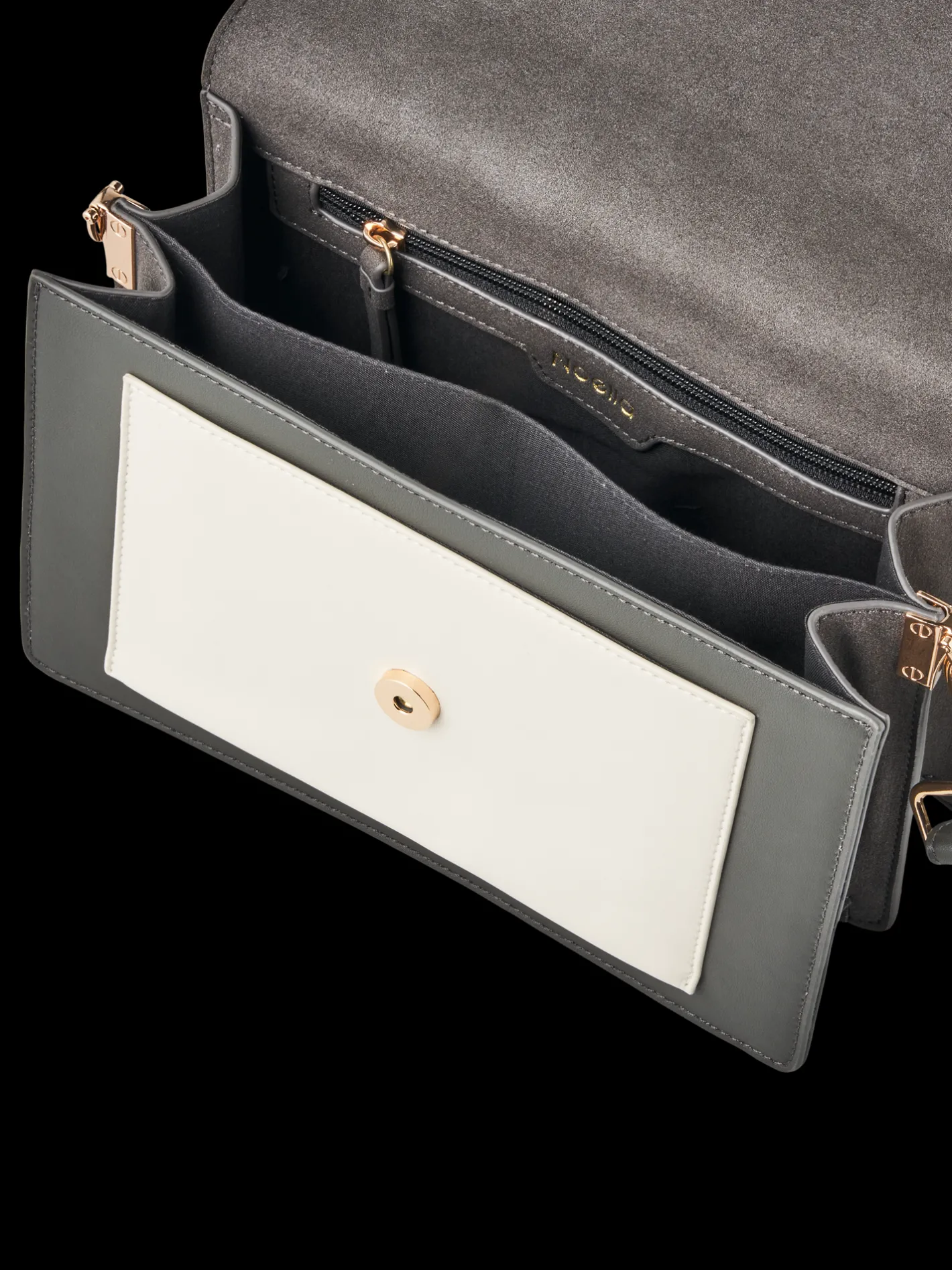 Nena-håndtasken er lavet af polyuretan med læderlook. Den måler 26 cm i længden, 11,5 cm i bredden og 18 cm i højden. Den lange rem måler 98-118 cm og er justerbar, så De kan indstille den til Deres foretrukne længde. Indvendigt har tasken to rum og en lille lomme med lynlås. Tasken åbner og lukker med en flap og har en ekstra lomme forpå.Søstrene gør Dem venligst opmærksom på, at denne vare kun forhandles online.
