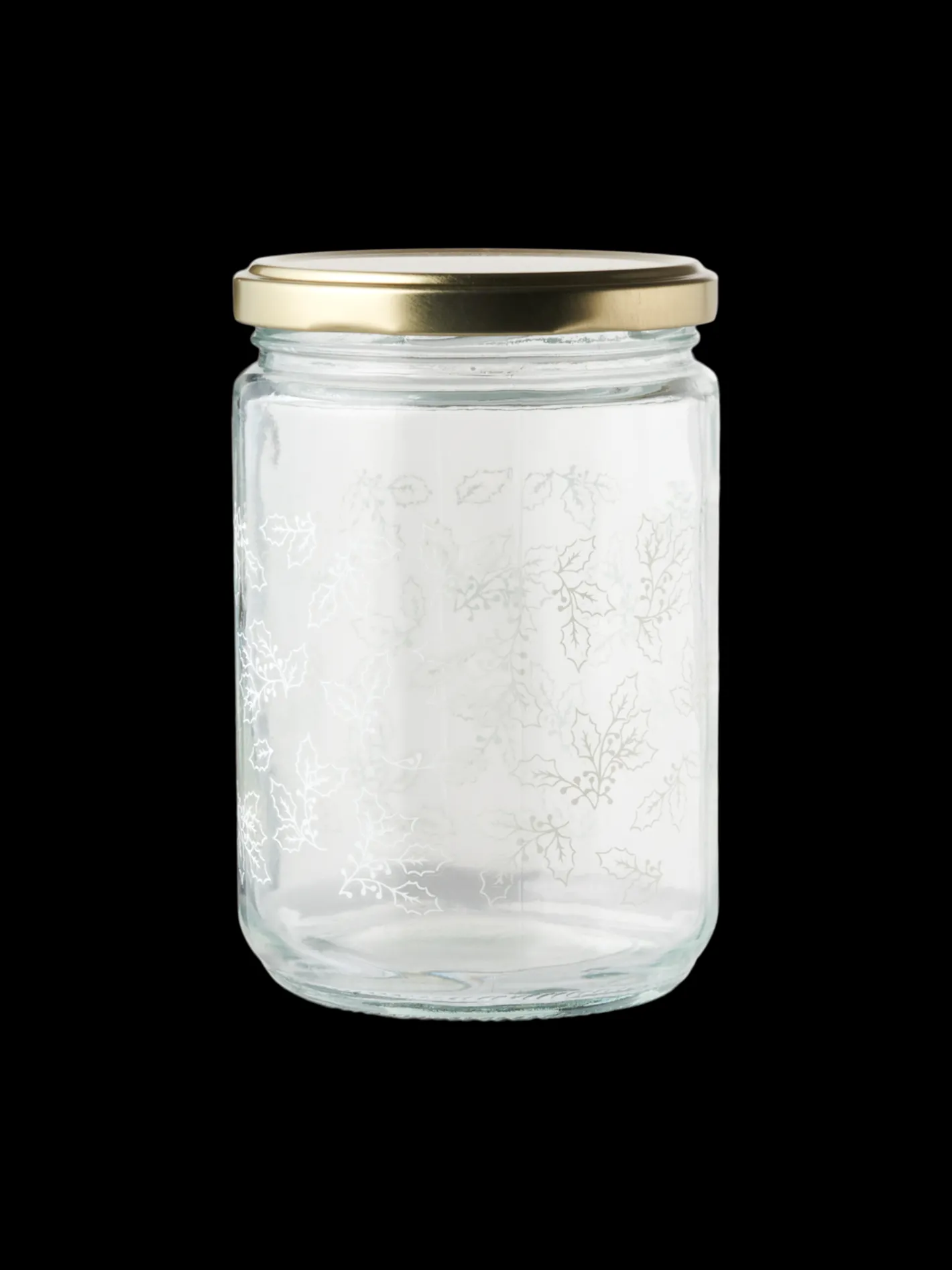 Søstrenes opbevaringsglas kan indeholde op til 500 ml. Den har et flot mønster, som kan give et dekorativt præg i køkkenet.
