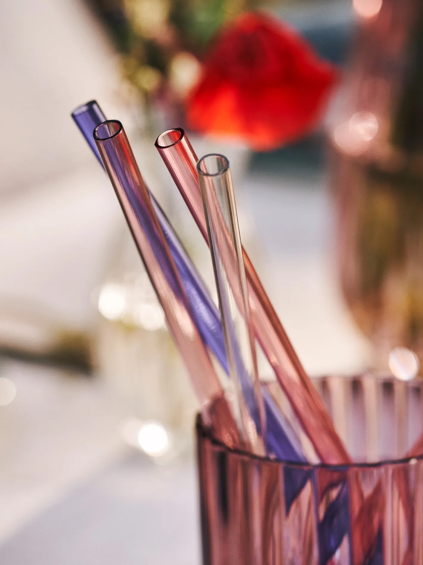 Søstrenes genanvendelige sugerør kommer i et sæt med 4 og kommer med en børste til rengøring.