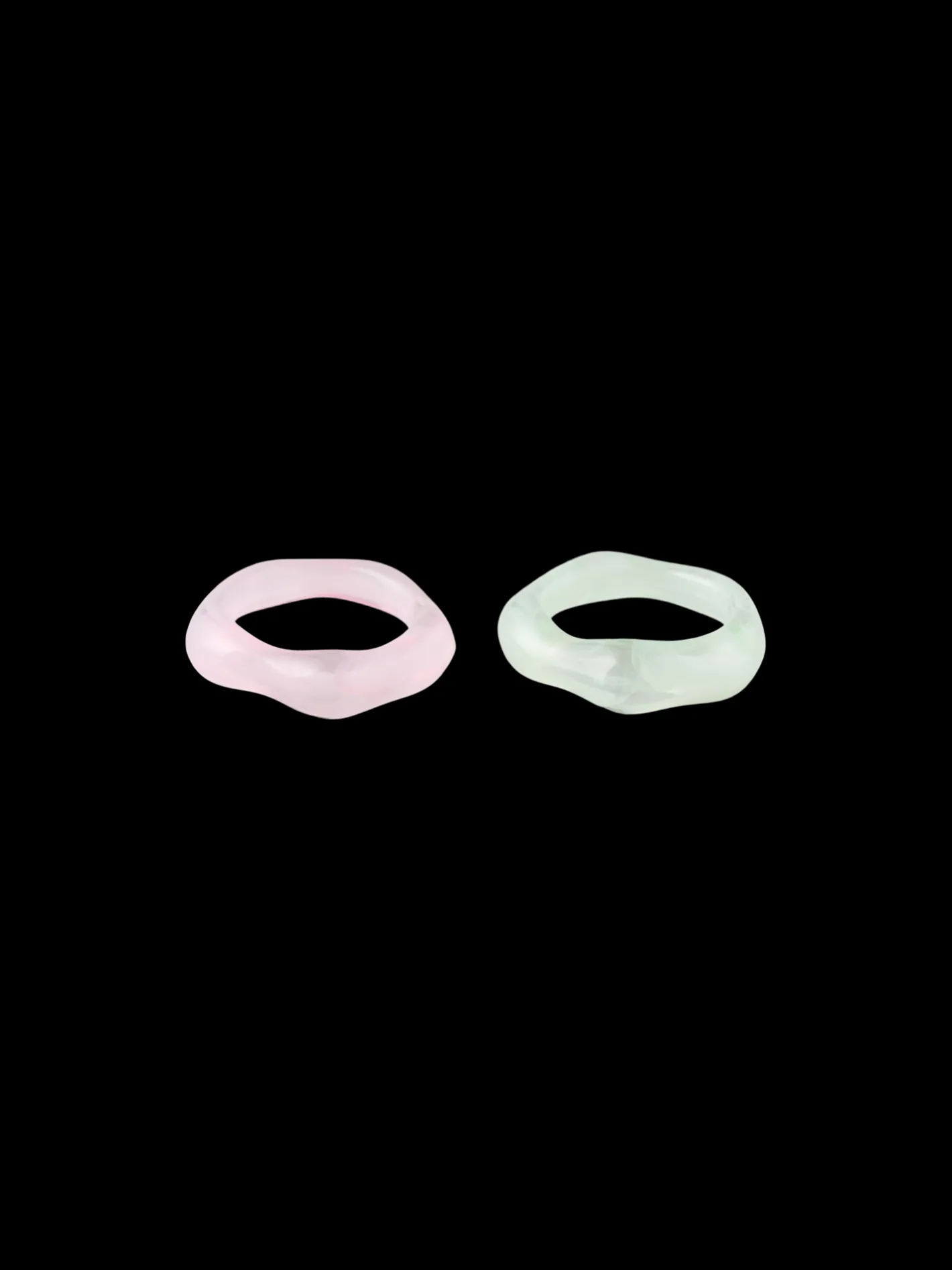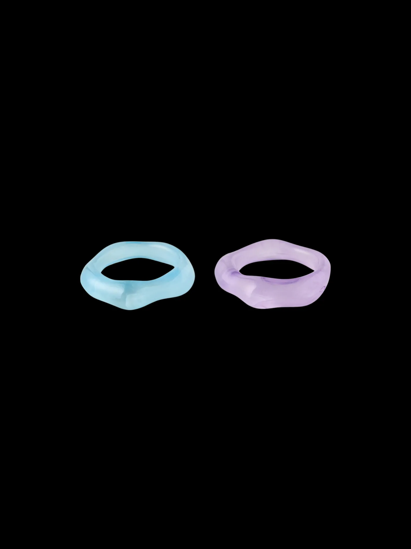 Søstrenes ringe kommer i en pakke med 2 stk. og har farverige designs.