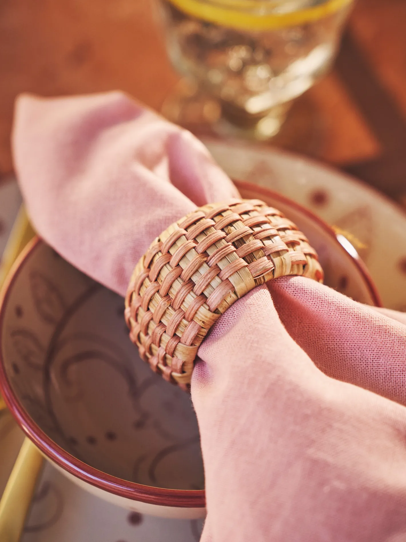 Søstrenes servietring er lavet af 100% FSC®-certificeret rattan. Den måler 4,5 cm i diameter. Da produktet er lavet af et naturmateriale, gør søstrene venligst opmærksom på, at produktet kan variere en smule i farve og udtryk.