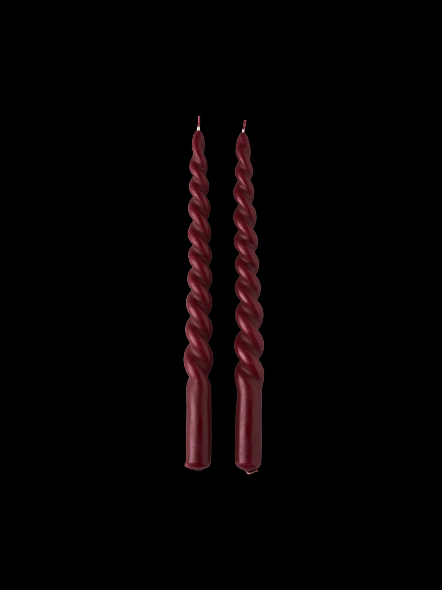 Søstrenes snoede lys er lavet af paraffinvoks og måler 28 x 2,2 cm. De har en brændetid på omtrent 9 timer.