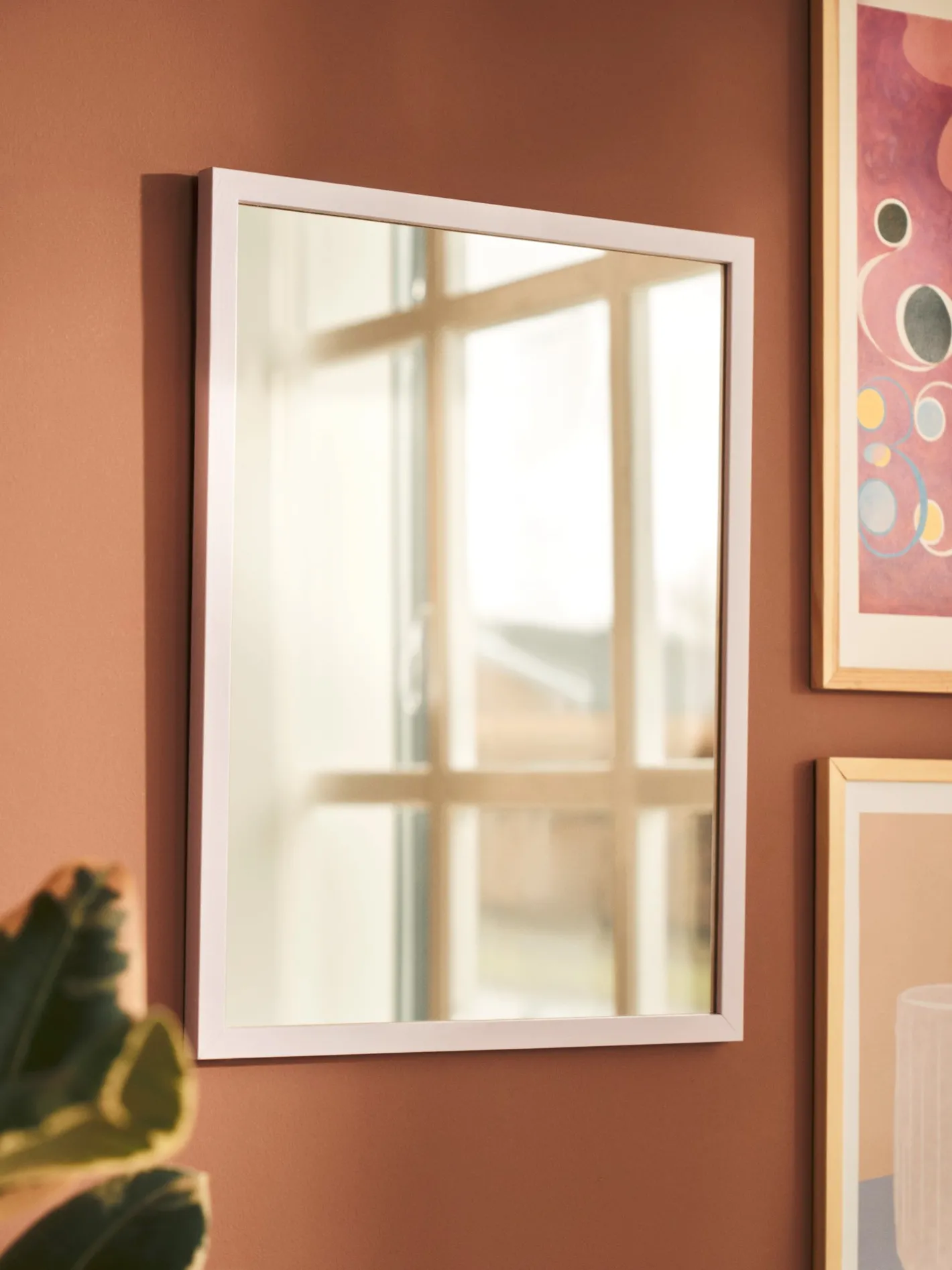 Dette skønne spejl fra danske Poster & Frame har en ramme i træ og er produceret i Danmark. Materialerne af høj kvalitet mødes i en vidunderlig forening af funktionalitet og design.Søstrene gør venligst opmærksom på, at da træ er et naturmateriale, kan rammens udtryk og farve variere en smule.