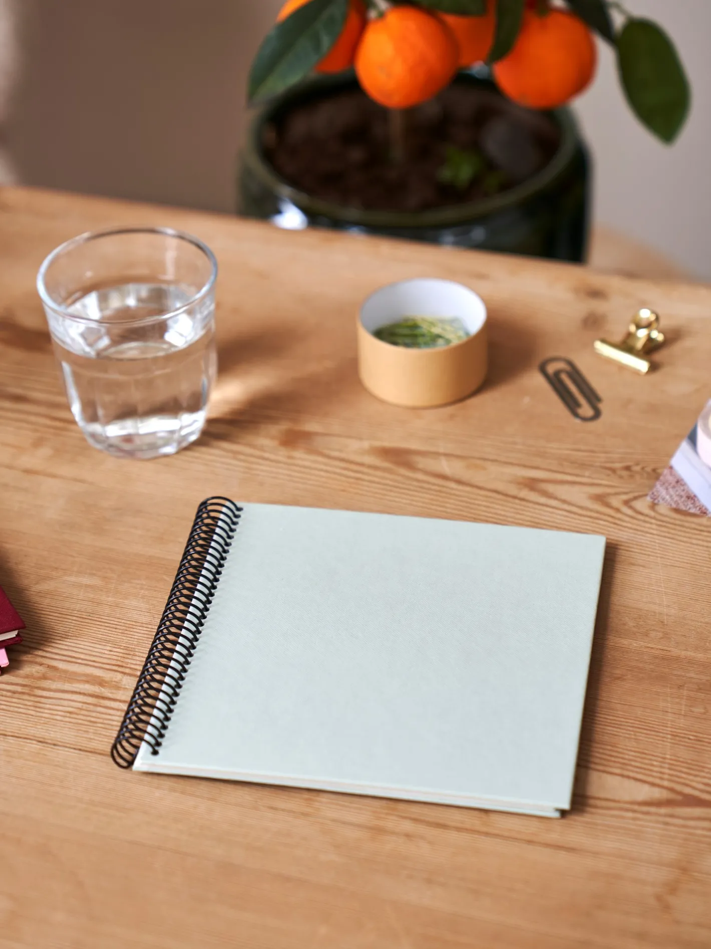 Spiralfotoalbummet fra Semikolon består af hvidt fotopapir og er indbundet med Efalin-papir. Den måler 17 x 17 cm og har 20 sider à 270 gsm.