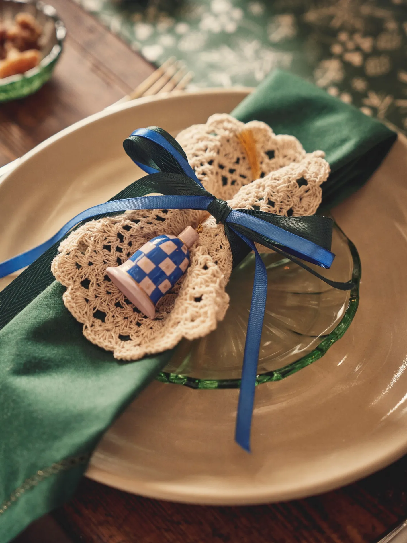 Søstrenes tallerken er lavet af glas og måler Ø14,4 cm.