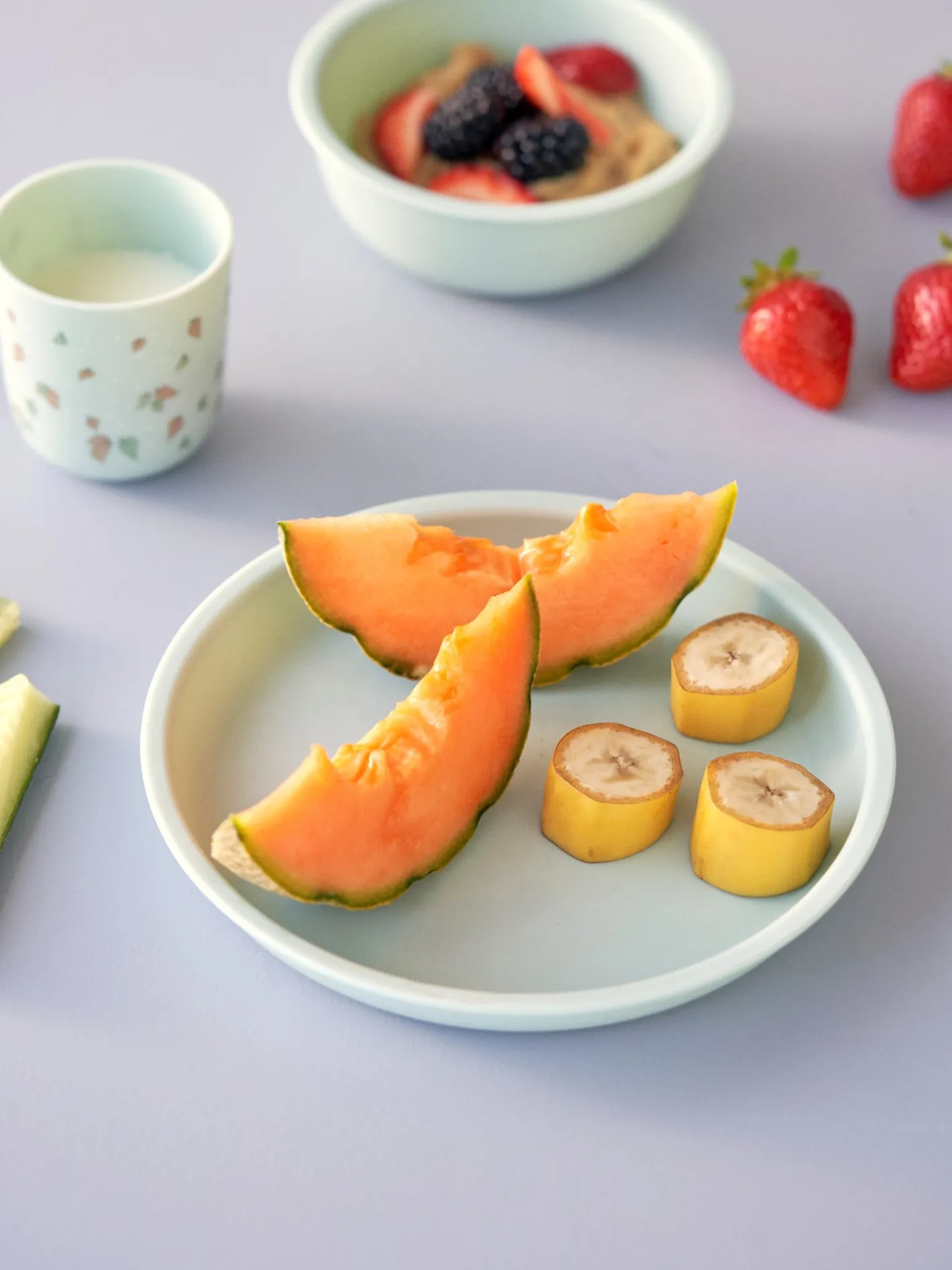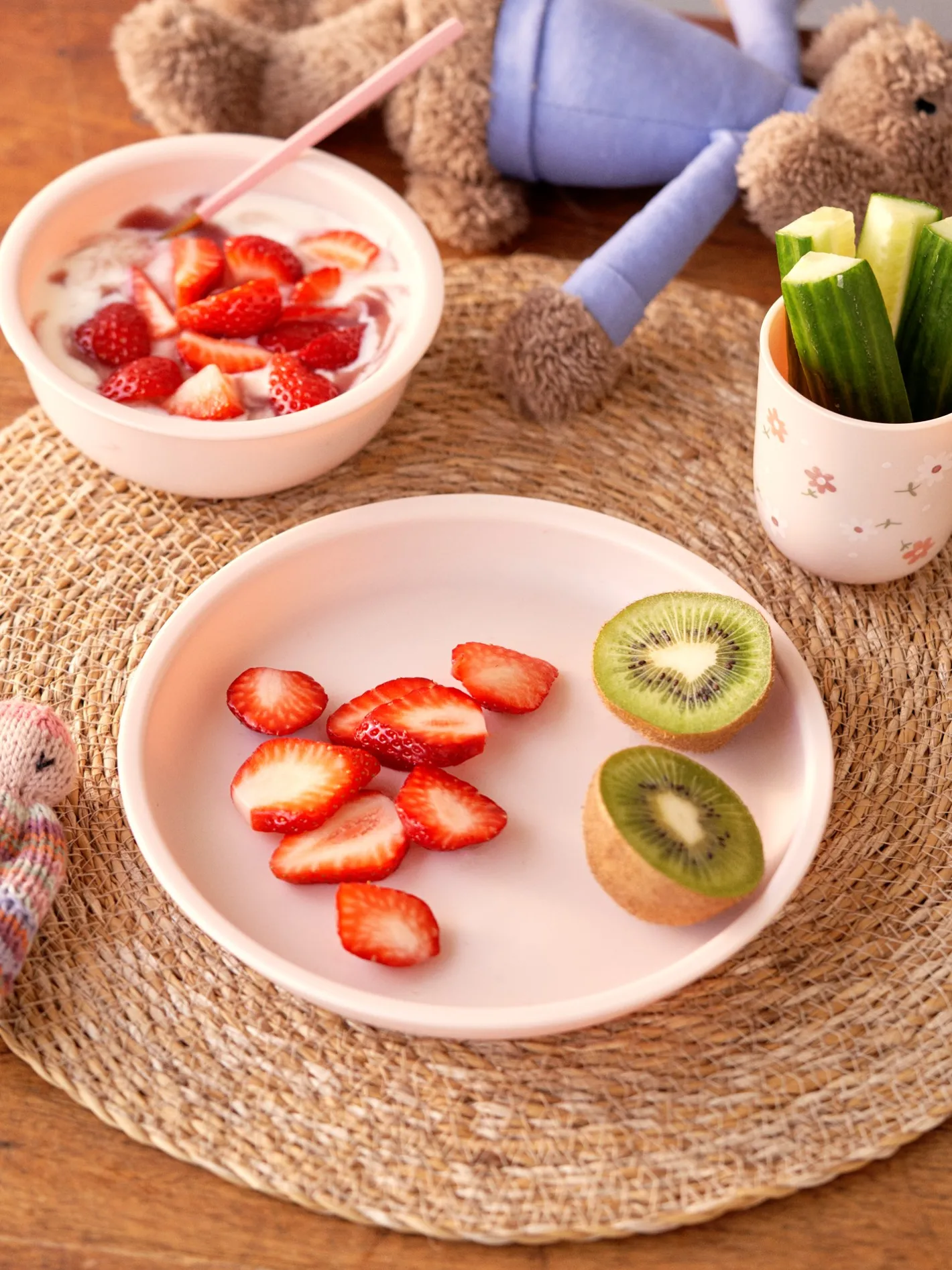 Søstrenes tallerken til børn er lavet af slidstærkt polypropylen – ideel til klodsede, små hænder. Den tåler opvaskemaskine men kan ikke bruges i mikrobølgeovnen eller ovnen.