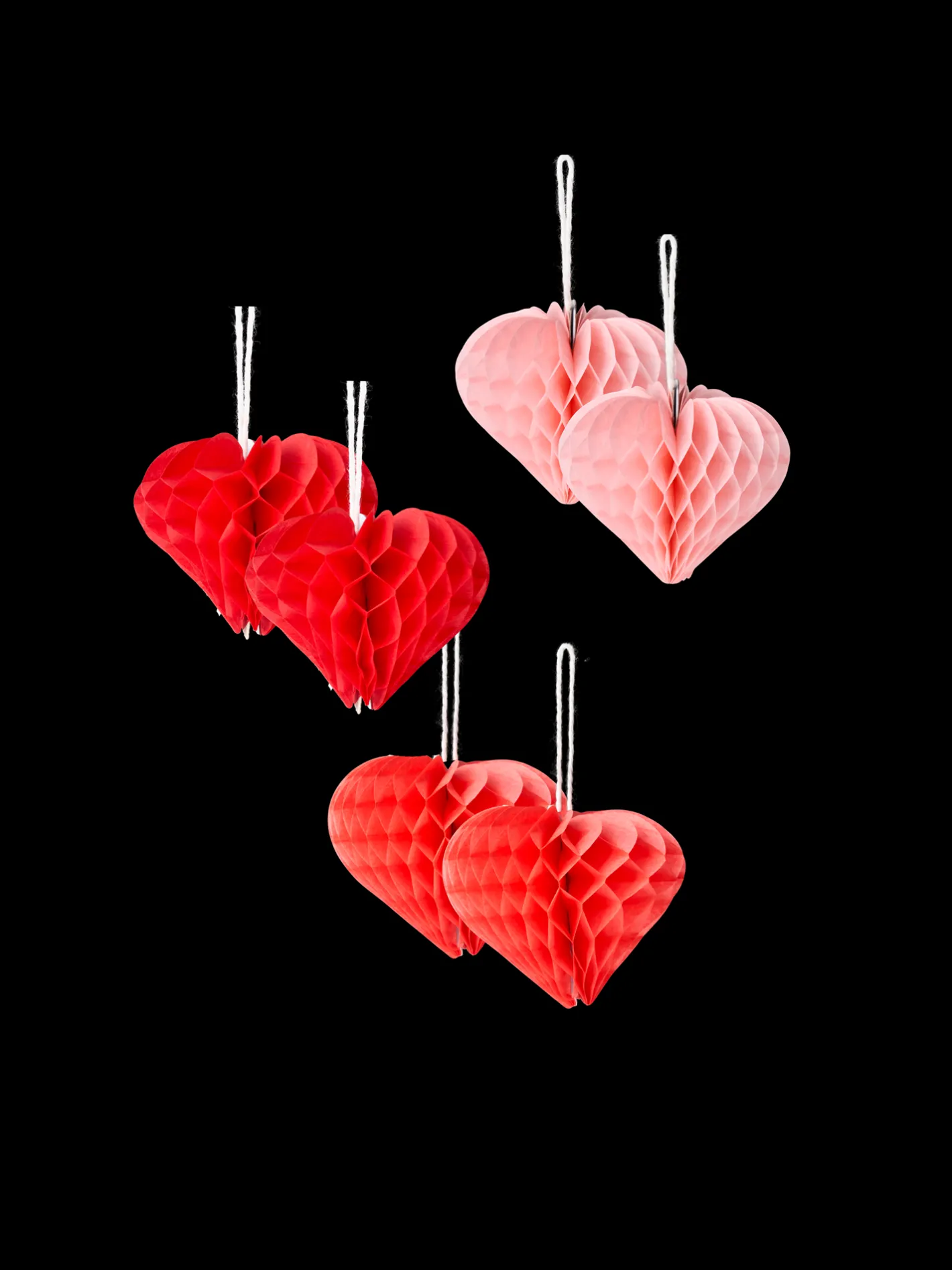Søstrenes pomponer er lavet af 100% FSC®-certificeret papir. De hjerteformede pomponer har en bredde på 6 cm og en højde på 9,5 cm inklusive snoren til ophængning. En pakke indeholder 6 stk.
