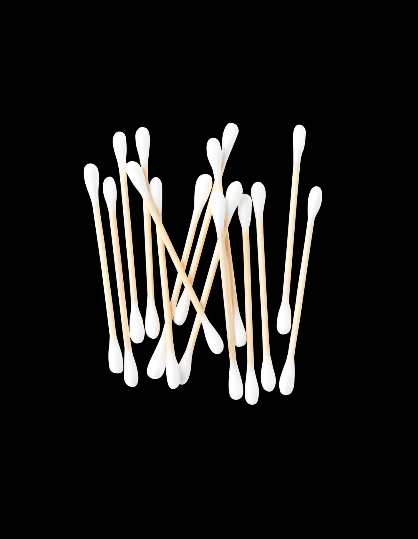 Søstrenes vatpinde er lavet af bambus og bomuld, og hver pakke indeholder 100 vatpinde.