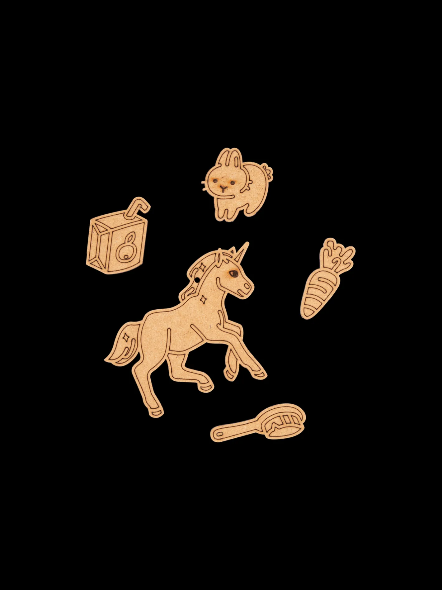 Et finurligt lille DIY-kit fra danske Crateit, produceret på Fyn. Kittet indeholder 5 træfigurer lavet af HDF samt 5 klistermærker. Figurerne er ikke malede, så de kære små kan dekorere dem, som de vil, enten med maling eller tusch.