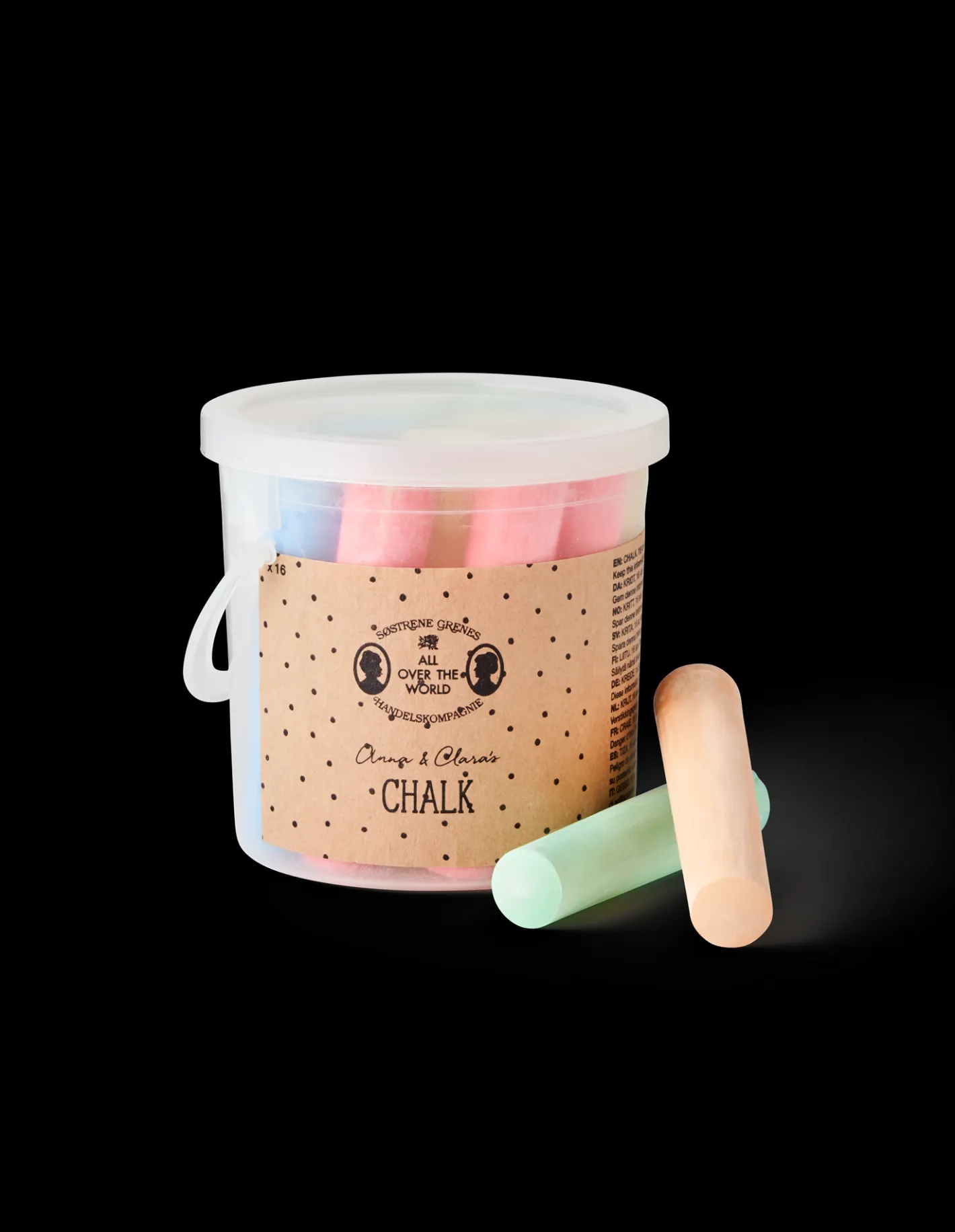 Anna og Clara sidder i haven og nyder en varm sommerdag. Ude på vejen er nevøen og niecerne særdeles optaget af at tegne med kridt. ”Tegn en hinkerude på gaden,” foreslår Clara. ”Det er vældig morsomt.” Søstrenes spand indeholder 16 vidunderlige gadekridt i yndige farver. De tykke kridt giver anledning til mange timers sjov, hvor de kære små kan lave flotte og fantasifulde tegninger på asfalt eller fliser.