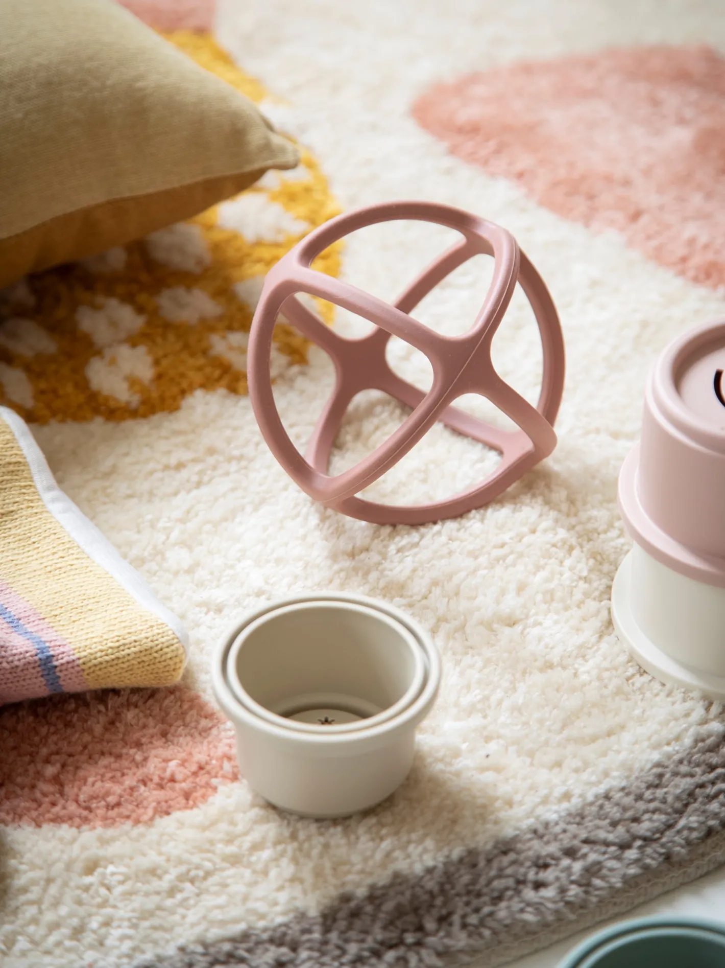 Kuglebideringen fra Mushie er lavet af fødevaregodkendt silikone. Den er perfekt til at hjælpe med at lindre Deres babys irriterede tandkød og kan også hjælpe med at udvikle finmotorik og sensoriske færdigheder. Den anbefalede alder for dette produkt er 3 måneder og opefter.Søstrene anbefaler at rengøre den med varmt sæbevand og lade den lufttørre. Bemærk venligst, at produktet altid skal bruges under opsyn af en voksen. Undersøg produktet før hver brug. Afskaf ved tegn på skade eller svaghed.