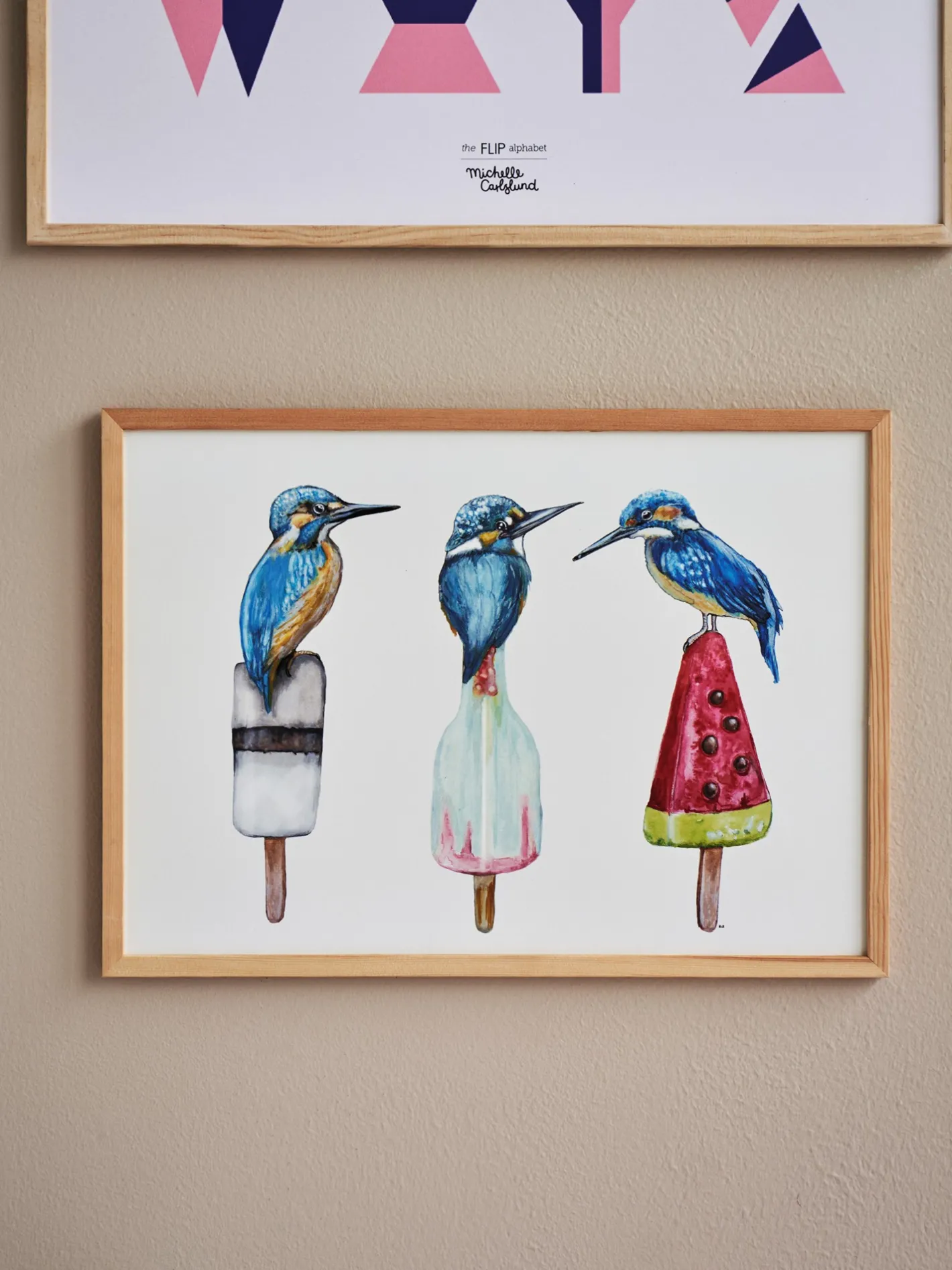 Søstrene gør Dem venligst opmærksom på, at denne vare kun forhandles online.Isfugle-plakaten fra Poster & Frame er trykt på papir af høj kvalitet for at sikre, at kunstværket kan glæde Dem i mange år fremover. Illustrationen er af MsM Art og er i A3-format.Anna og Clara tror på glæden ved at have smuk kunst på væggene, også på børneværelset. Det pryder ikke kun hjemmet, men inspirerer også til kreative sysler. “Hvorfor ikke dekorere børneværelset med søde dyreprint?” foreslår Clara. “Det er en dejlig idé,” svarer Anna begejstret og begynder straks at vælge et par plakater til deres nevøs og niecers værelse. Plakaten kommer i et sikkert paprør.