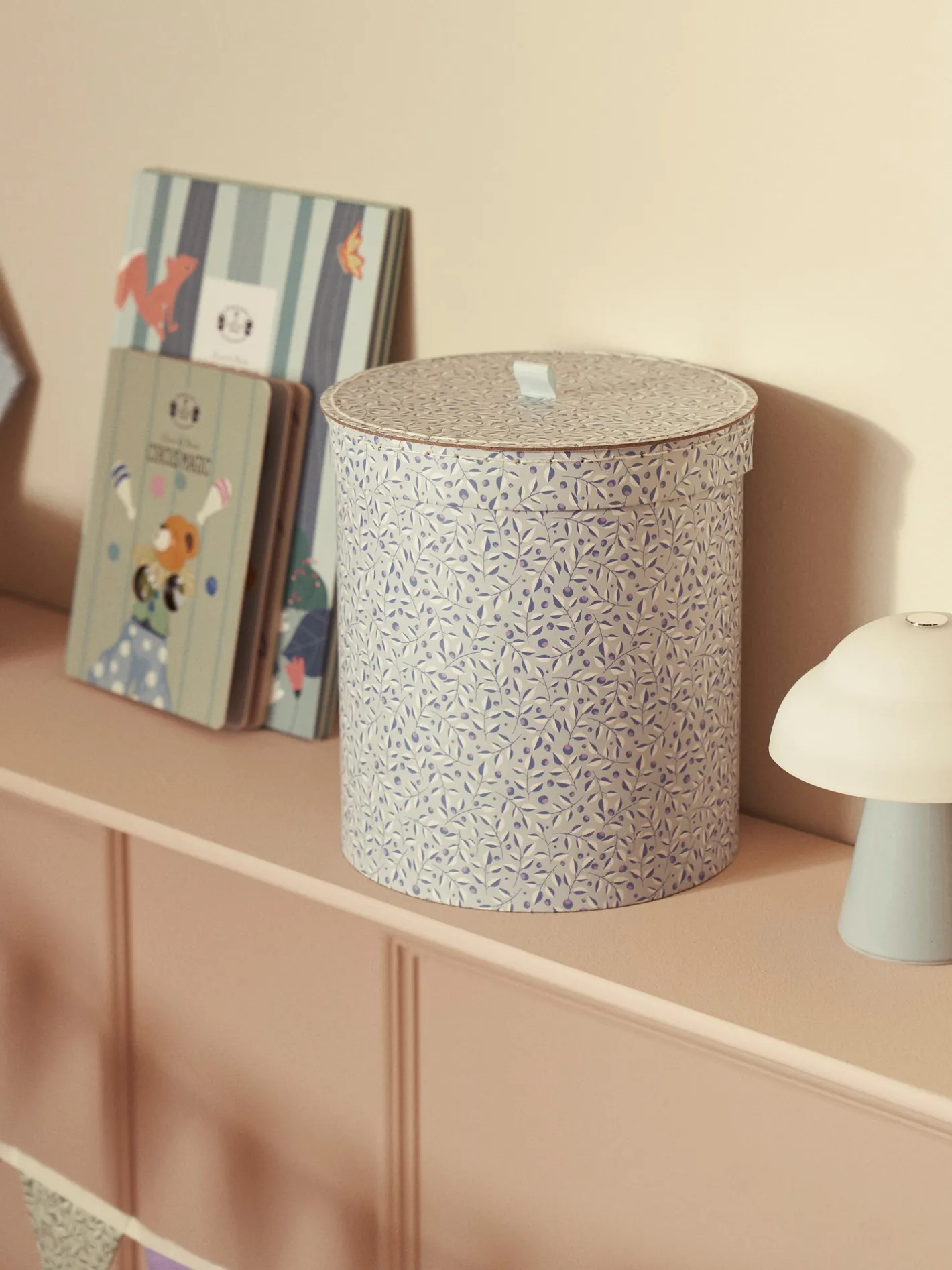 Søstrenes runde opbevaringsæske er lavet af FSC®-certificeret pap.Clara anbefaler, at De bruger den til at opbevare småting, kreative redskaber eller endda bruger den som en smuk måde at pakke gaver ind på.